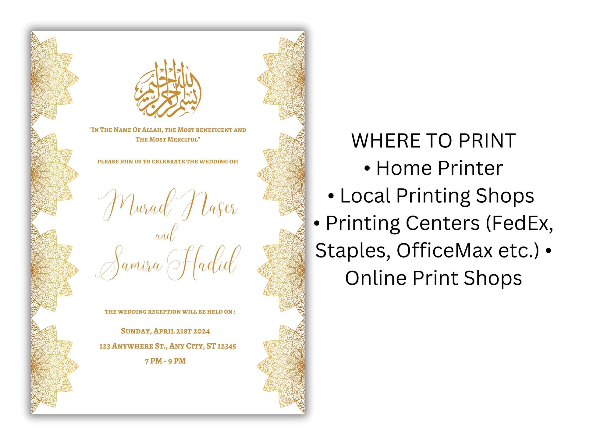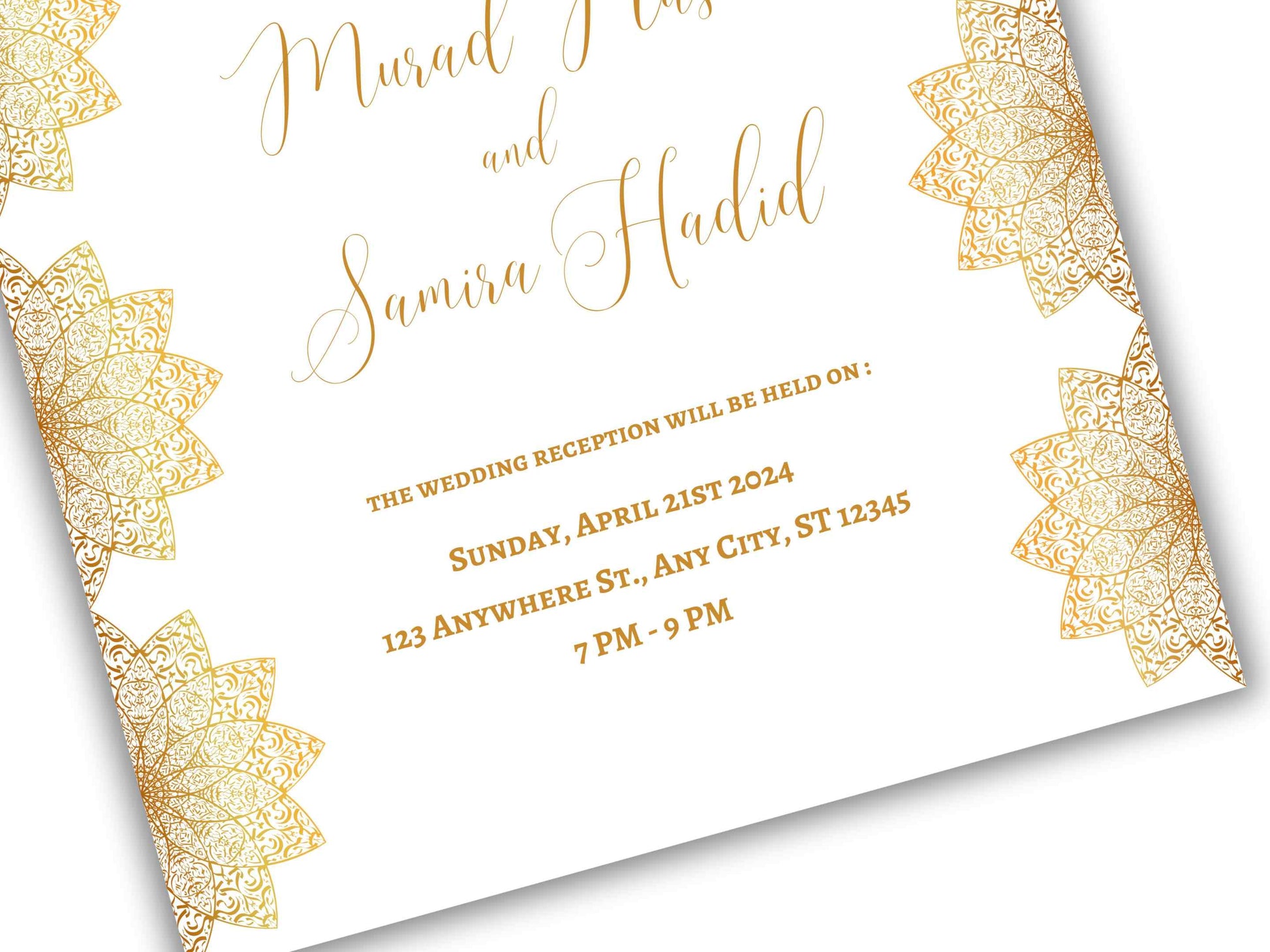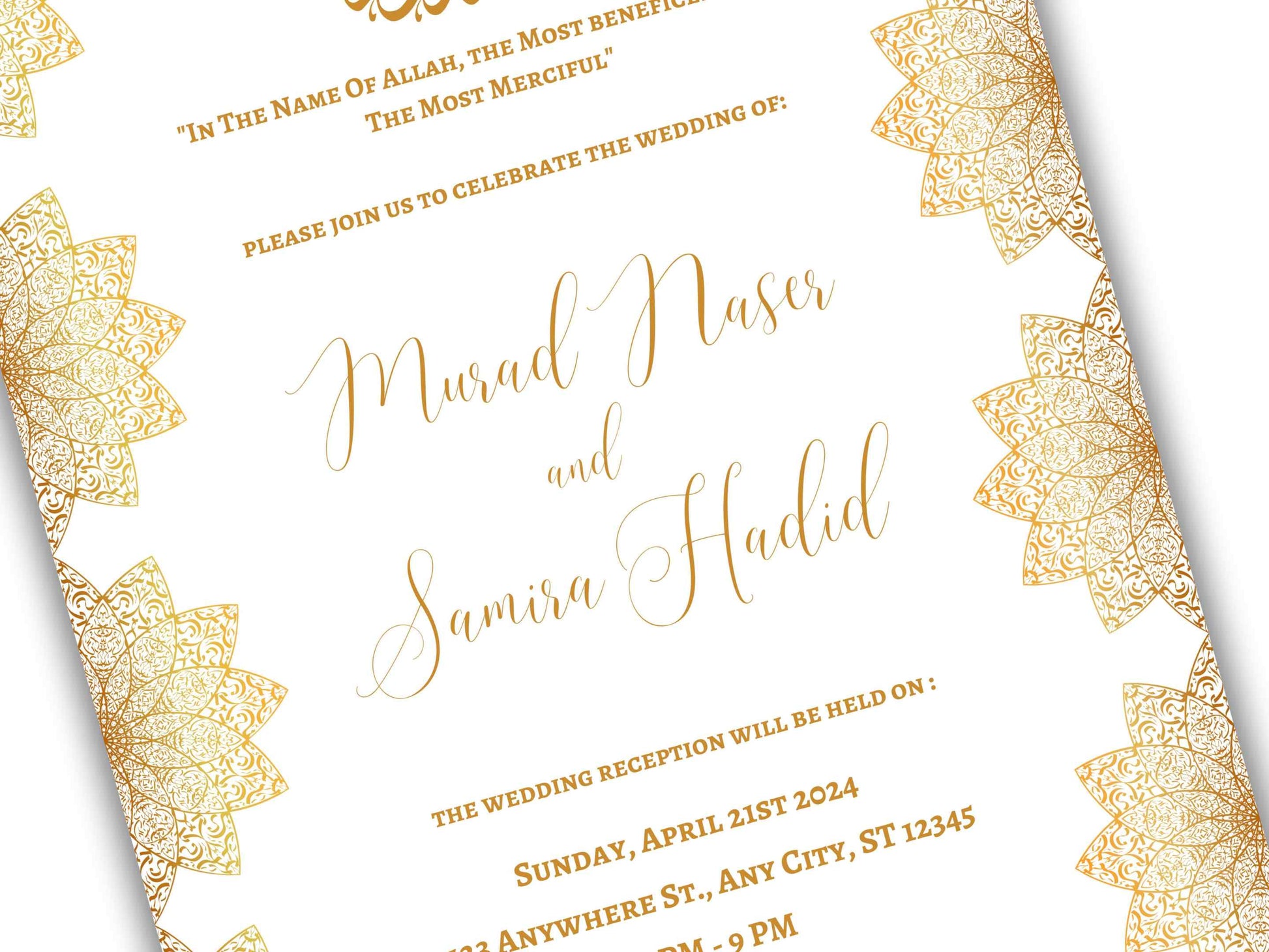 Gold Muslim Wedding Invitation, Nikkah Invitation, Muslim Wedding Invite, Wedding Invite, Invitation Template, Editable Canva Template, WT55