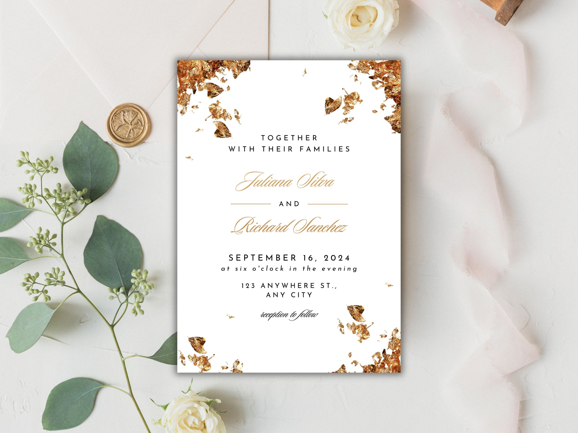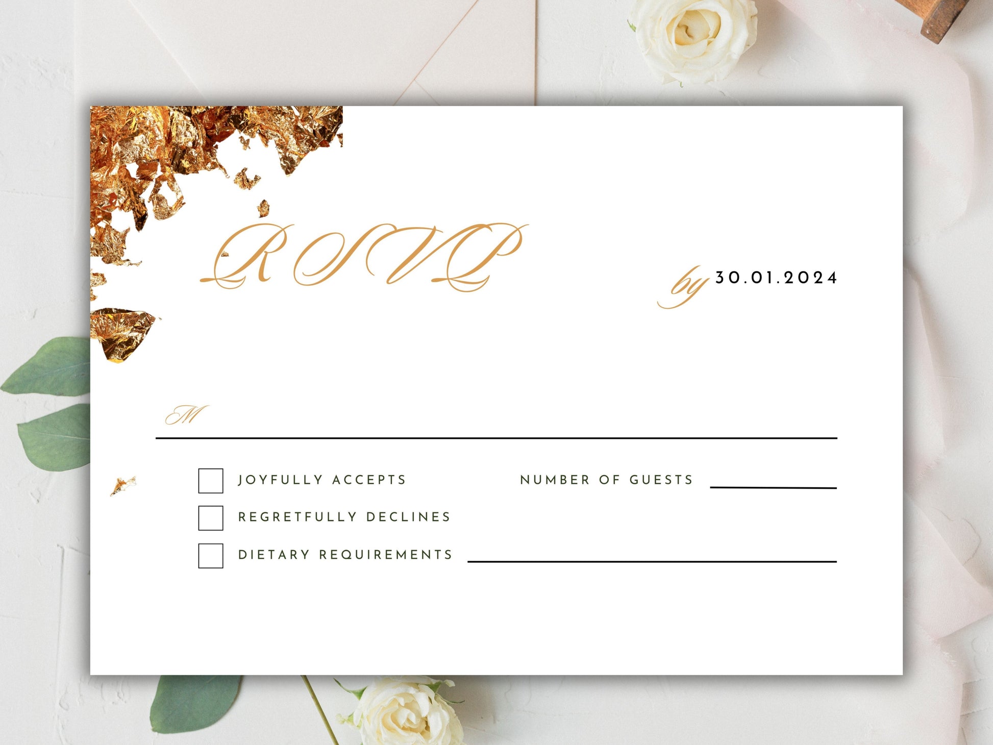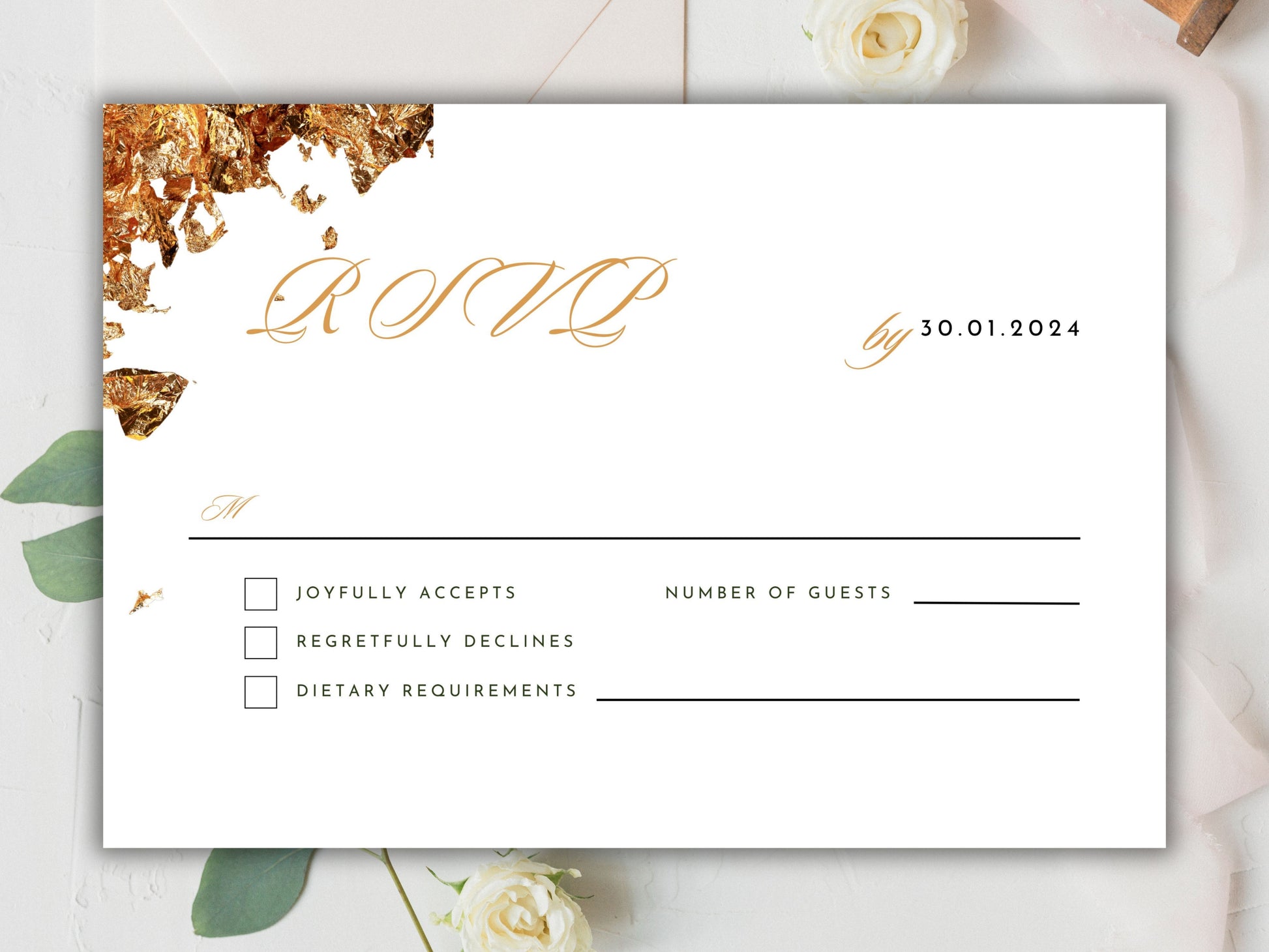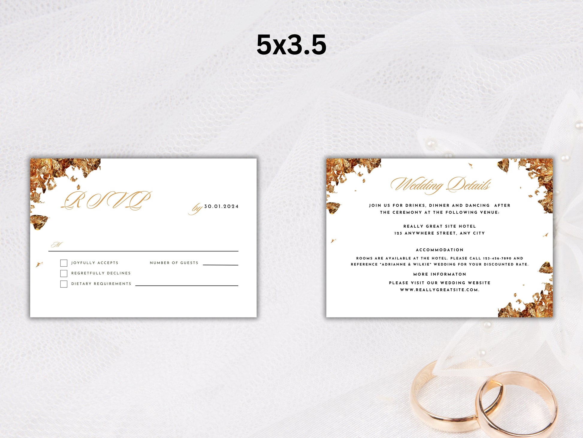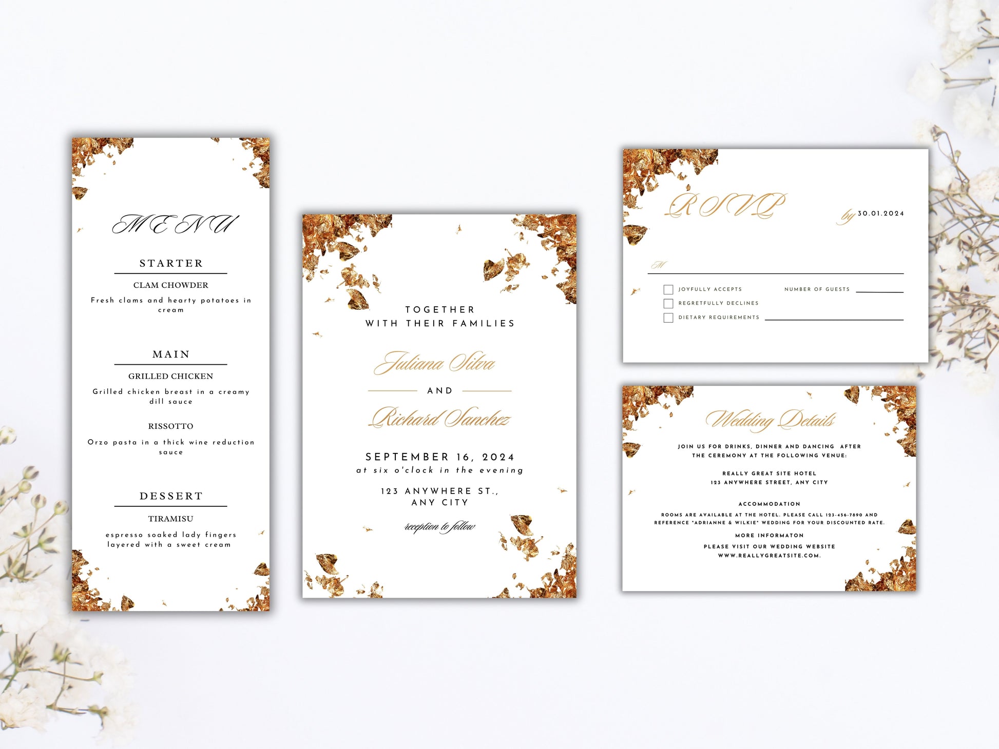 Gold Wedding Invitation Set, Gold RSVP, Wedding Invitation, Details Editable, Menu Card, Save The Date, Wedding Invite. WC82