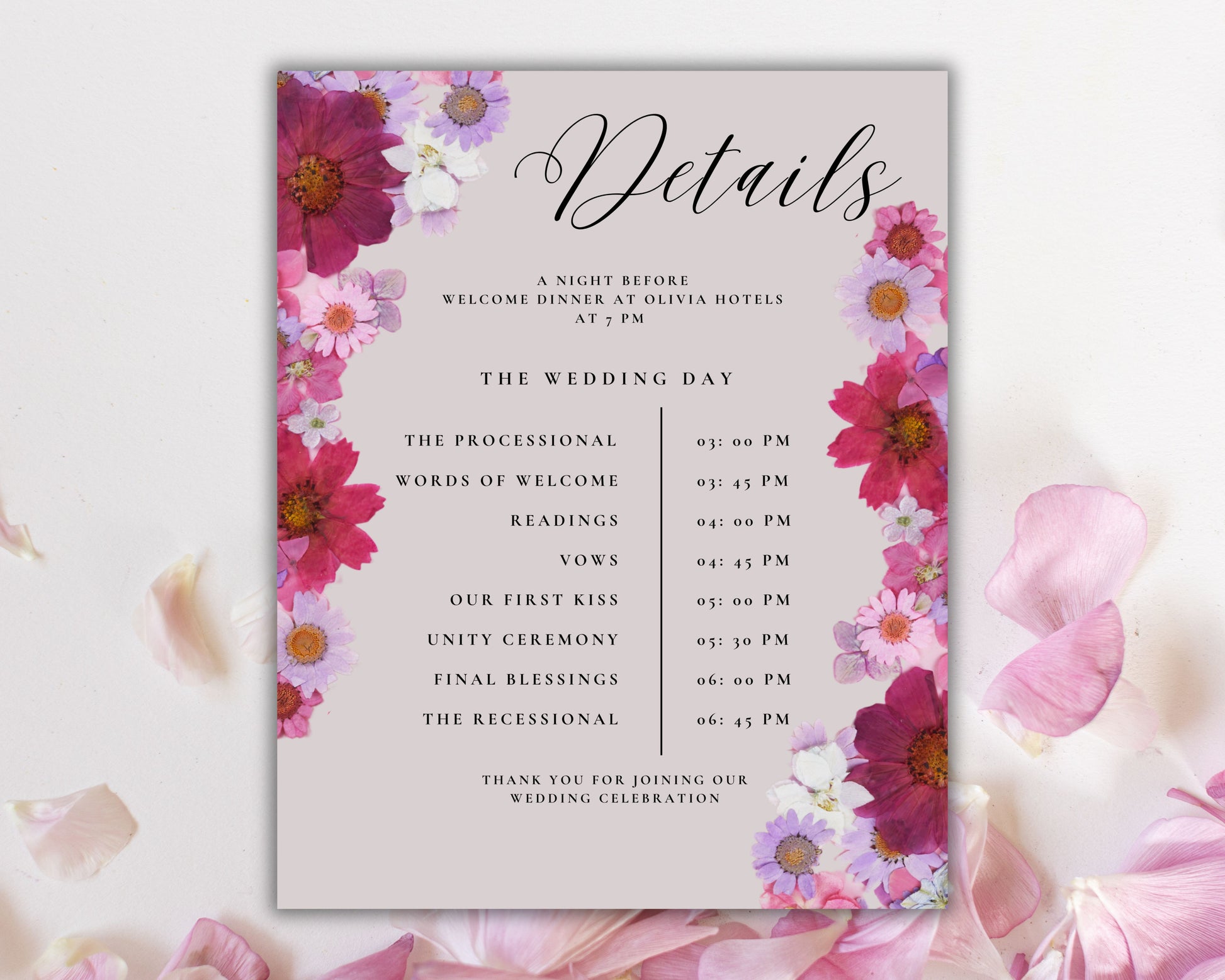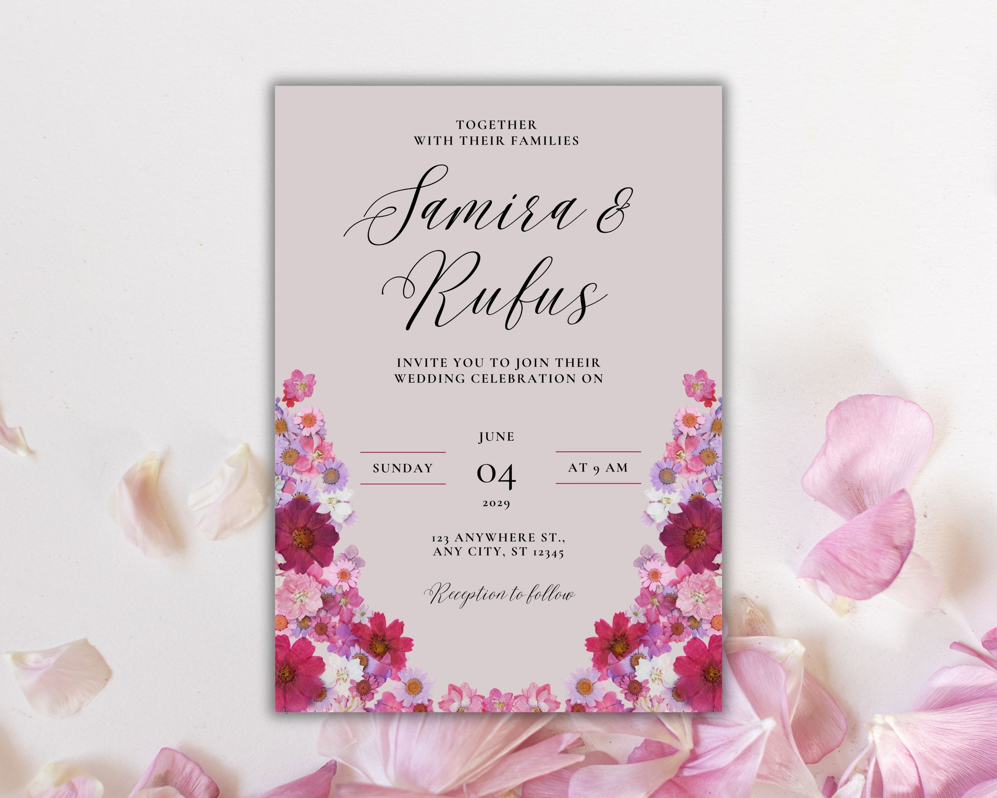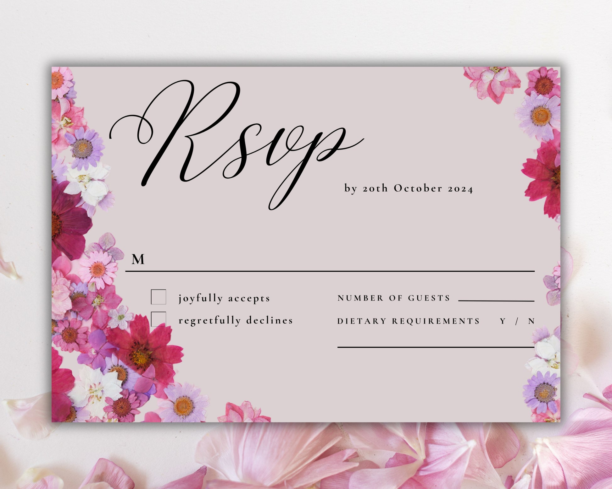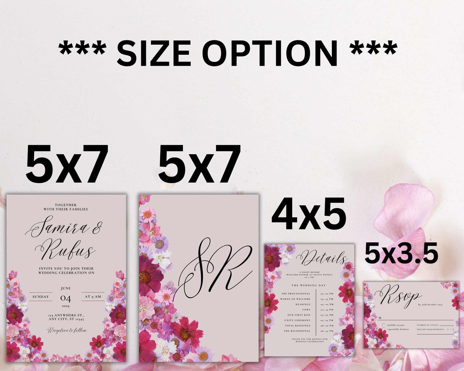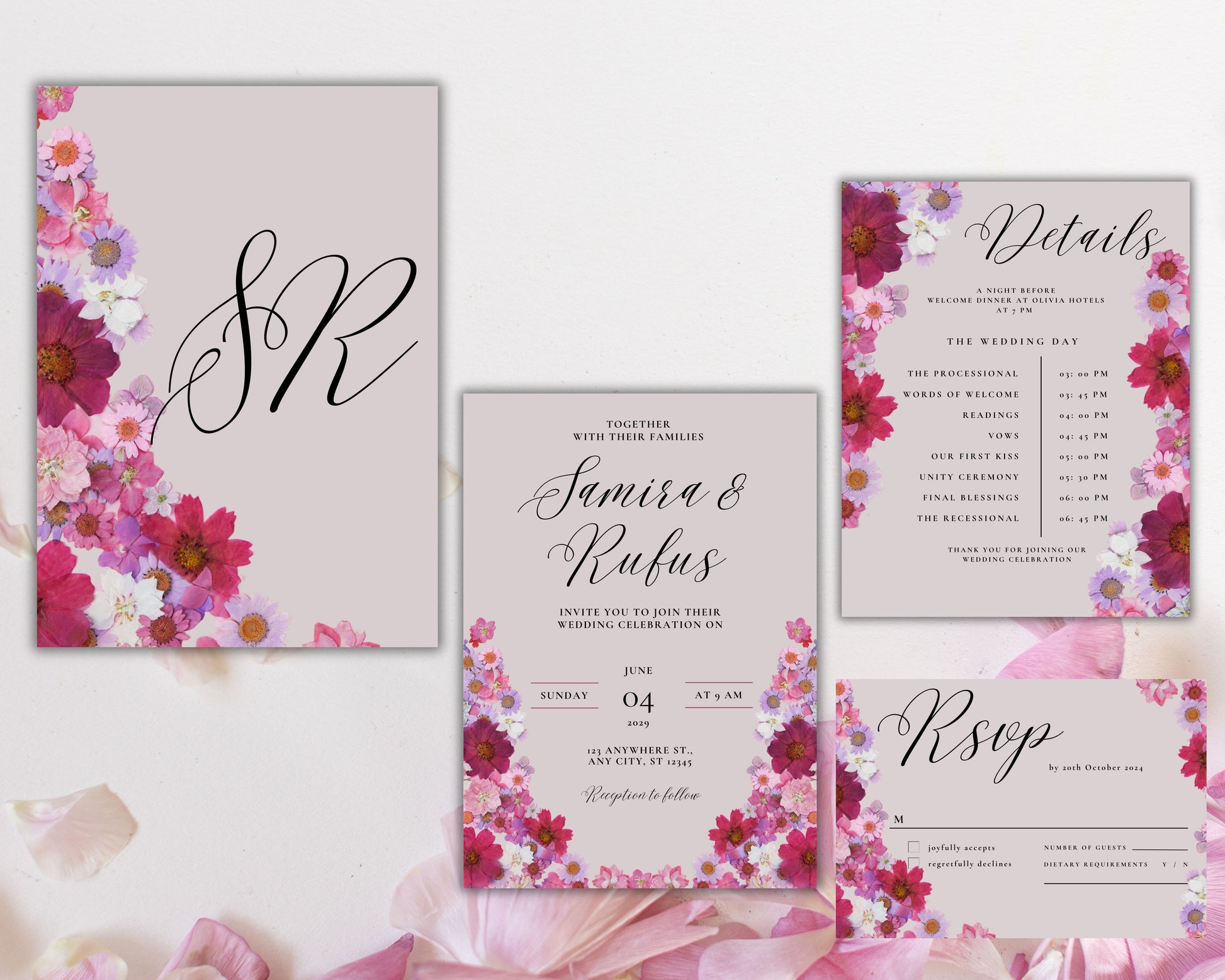 Pink Flowers Wedding Invitation set, Pink Floral RSVP, Elegant Pink Rose wedding Invitation, Details , Editable,Template, WT47