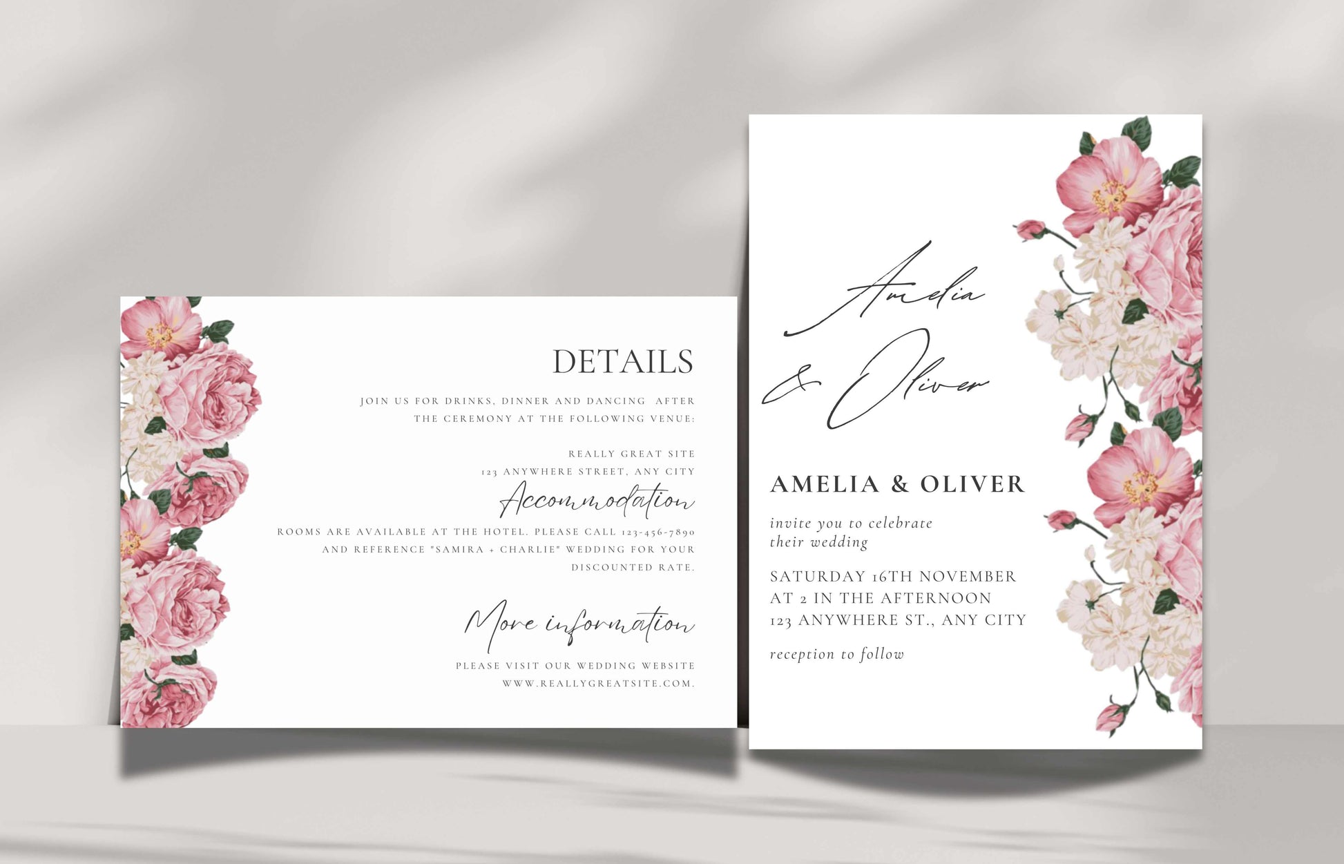 Pink Rose Wedding Invitation, Floral wedding invitation template suite, Editable Rsvp, Digital invitation template, Wedding Invites. WE118