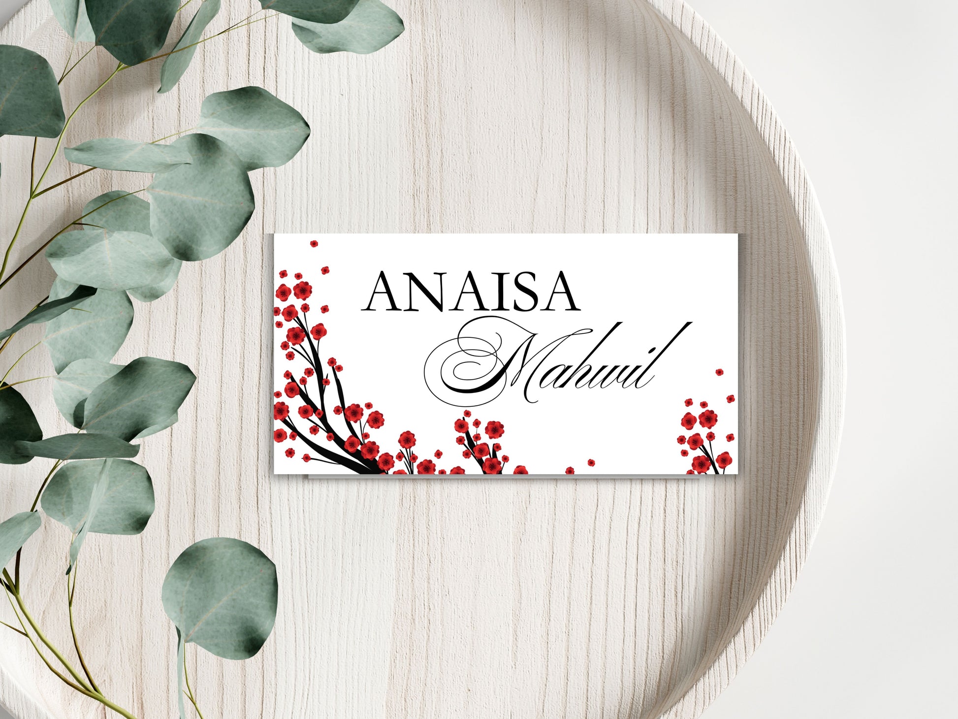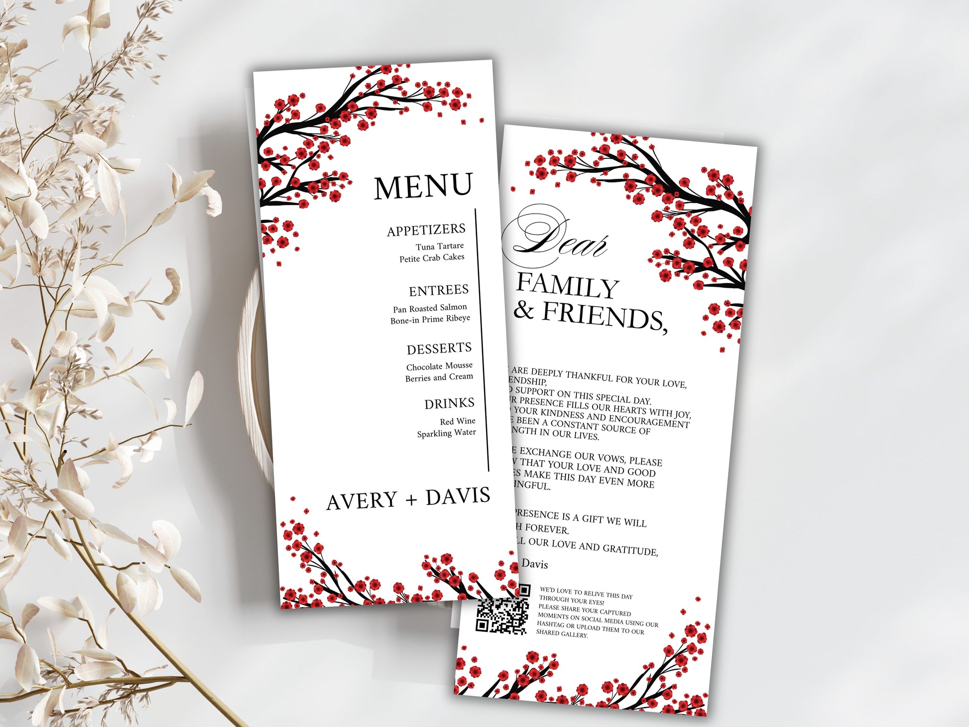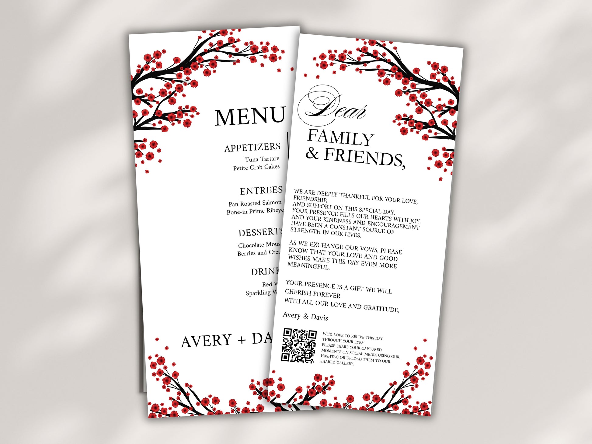 Red Floral Wedding Menu & Thank You Card Template .WI192