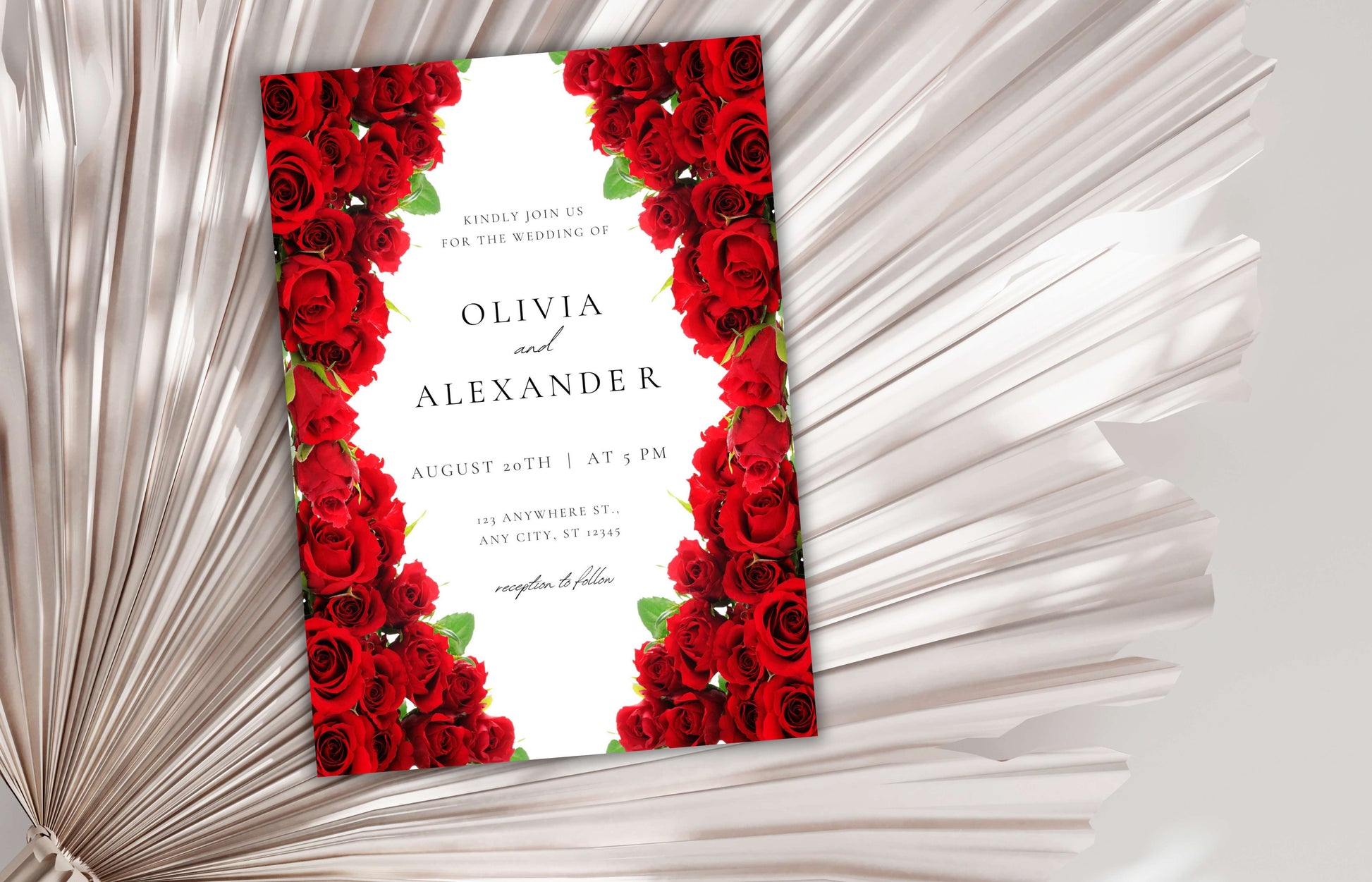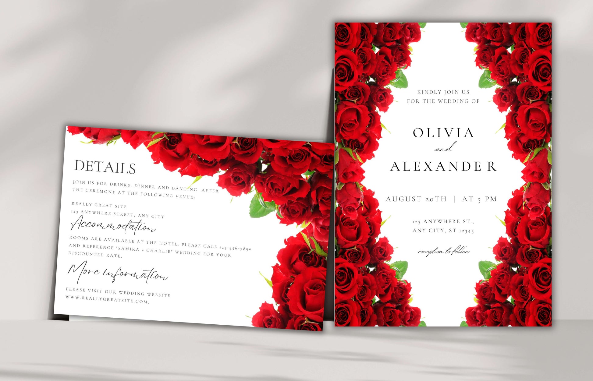 Red Rose Wedding Invitation set, Red Rose floral wedding invitation, Red Roses wedding invitation set, Editable Rsvp, Detail Card. WI120