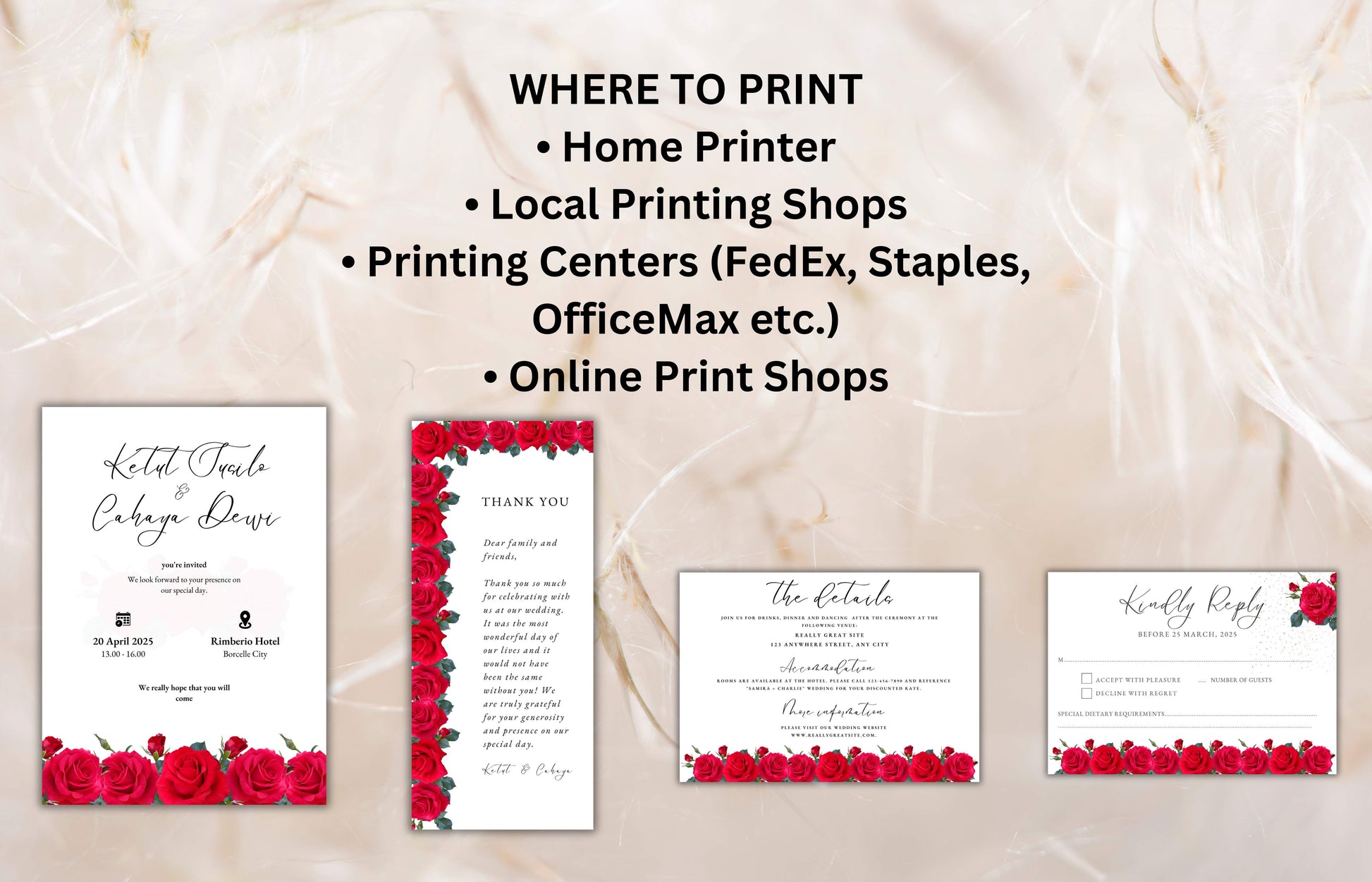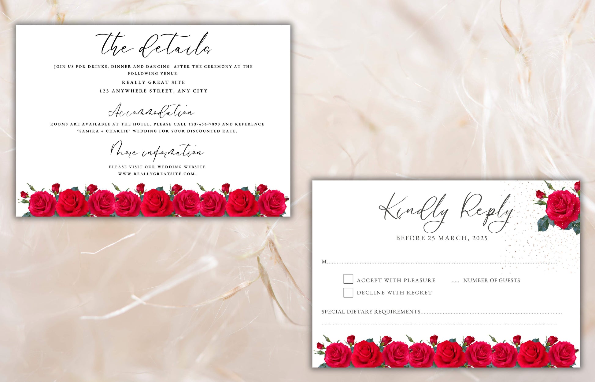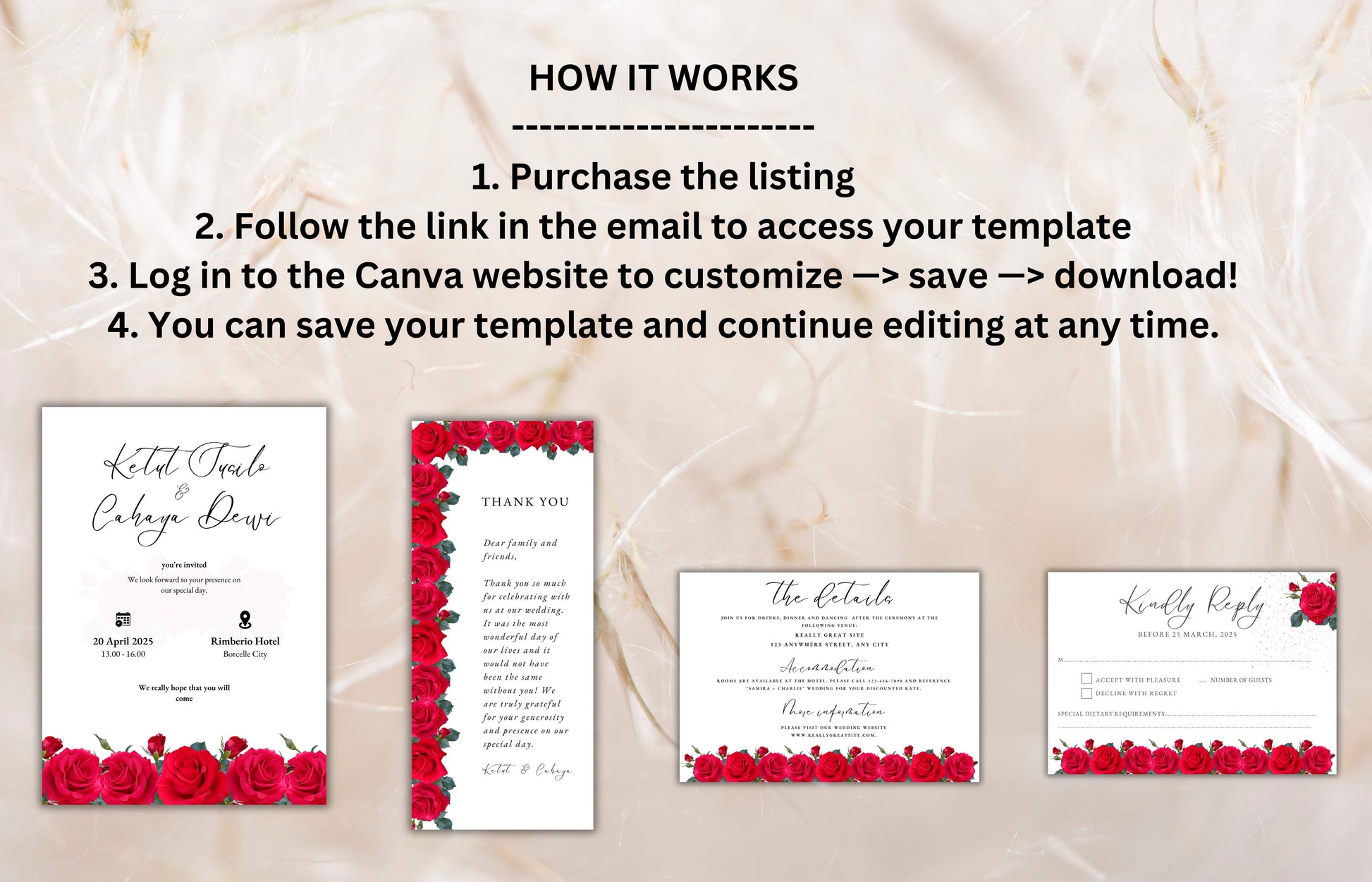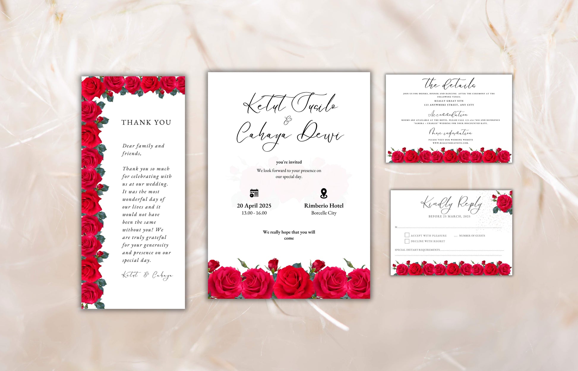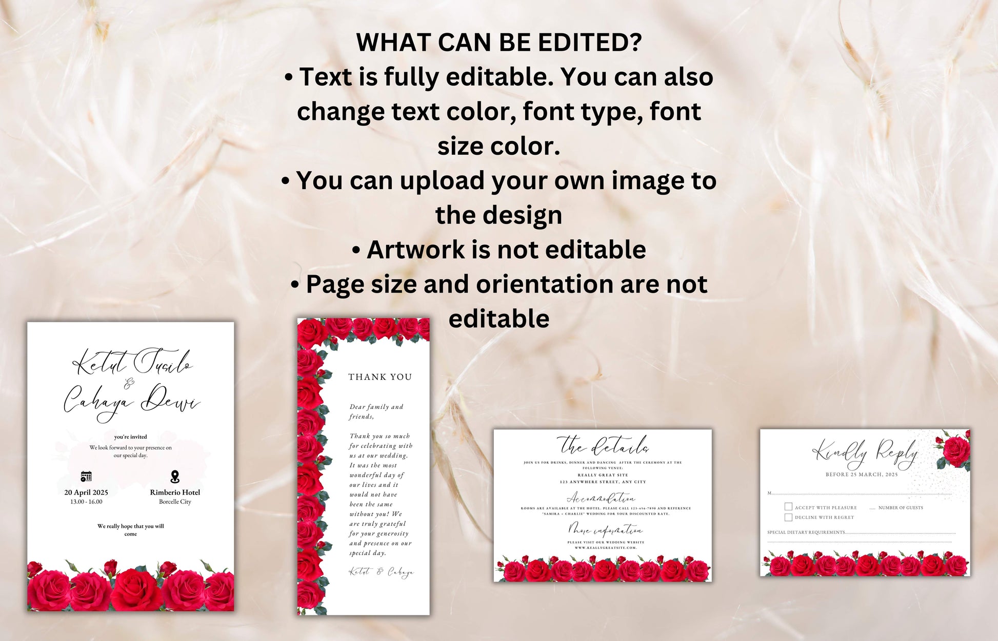 Red Rose Wedding Invitation set, Red Rose RSVP, Dark Red floral, Red Rose wedding Invitation, Details, Editable, Thank You Card. WIT64
