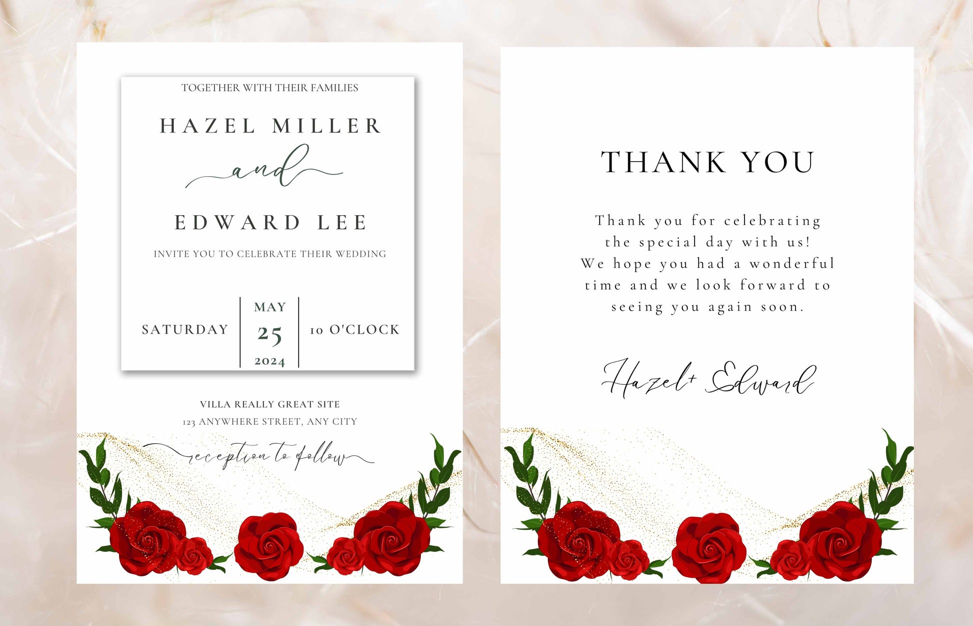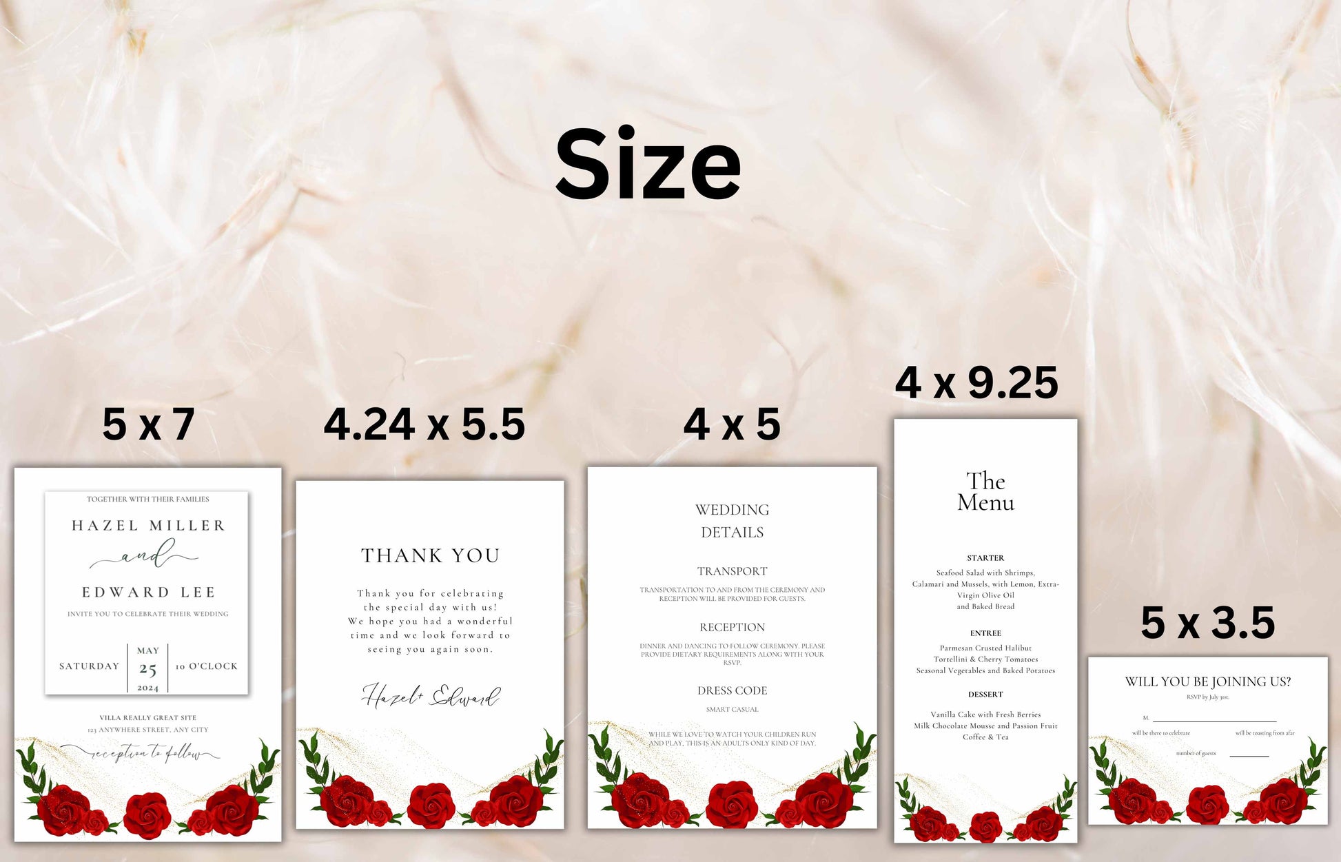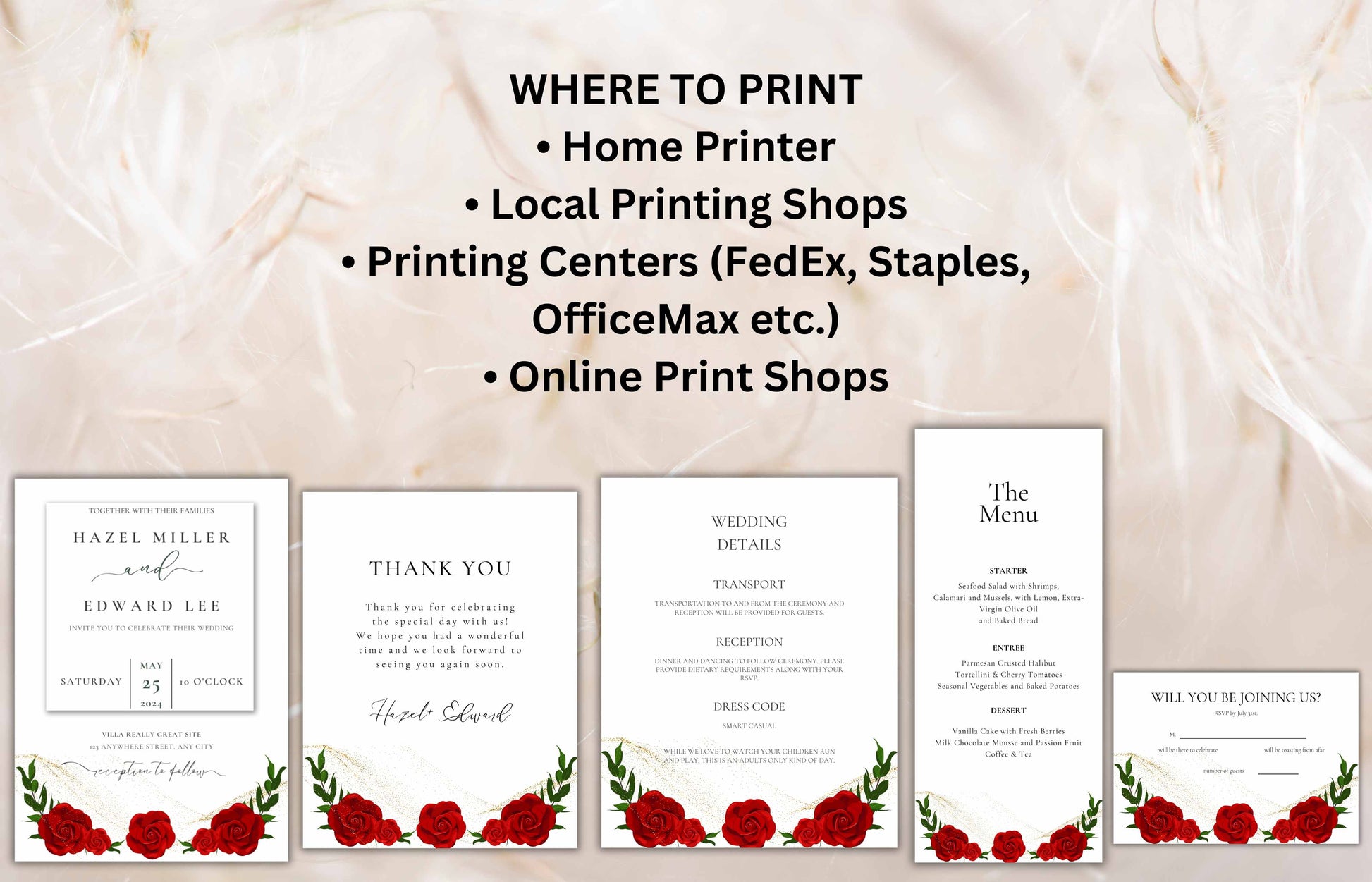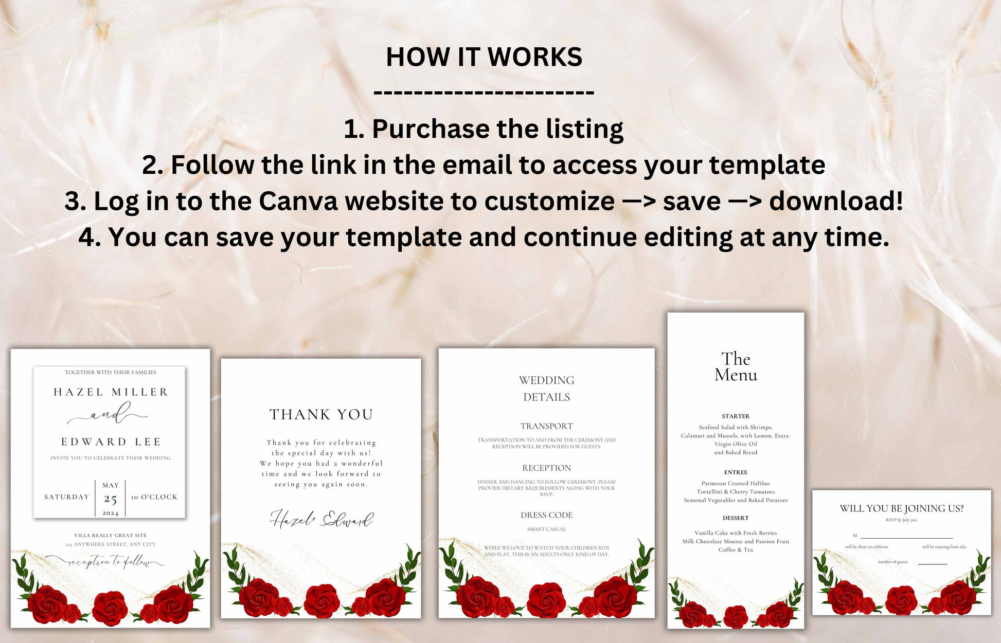 Red Rose Wedding Invitation set, Red Rose RSVP, Dark Red floral, Red Rose wedding Invitation, Details, Menu, Editable, Thank You Card. WIT62