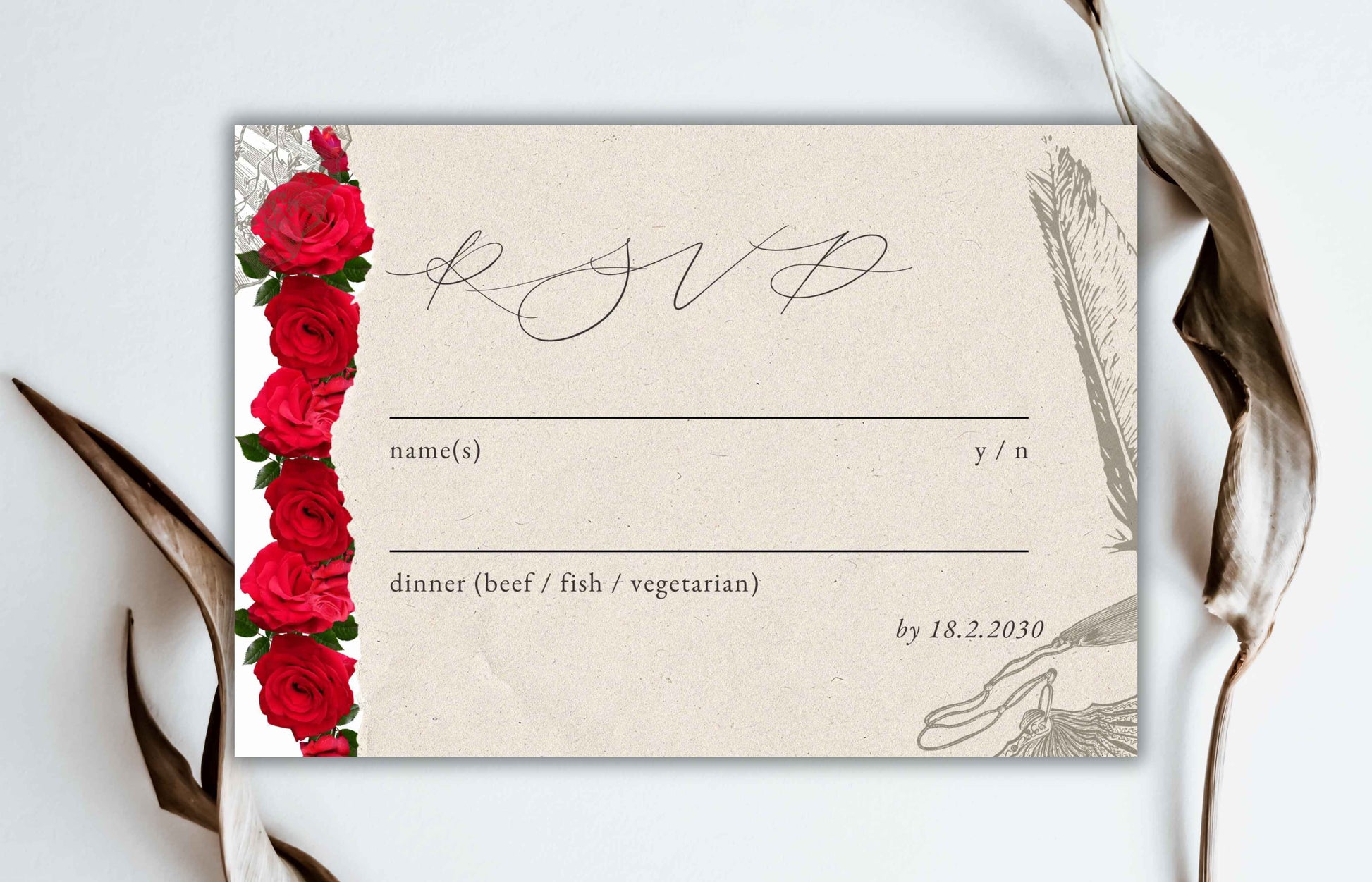 Red Wedding Invitation Template , Red Roses Invite, Elegant Red Rose Wedding Invitation, Editable, Rsvp, Details, Digital Download. WI113