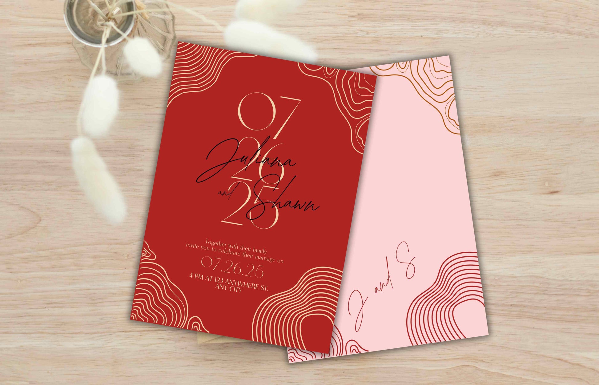 Red Wedding Invitations | Retro Themed Wedding Invitation Set | Editable Modern Digital Download Invite Template | Boho. WI110