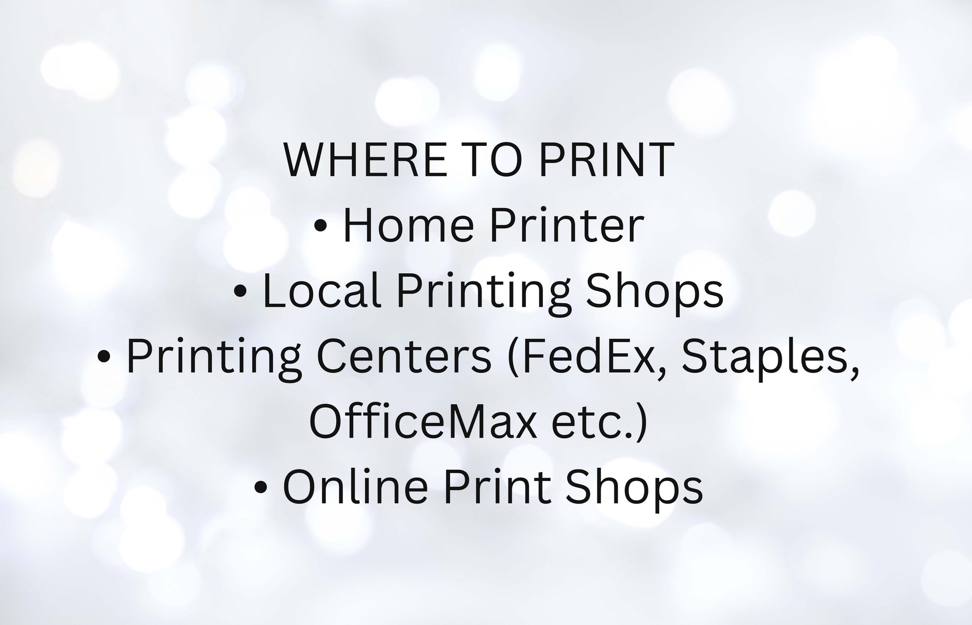 • Print at home or at one of your local print shops.