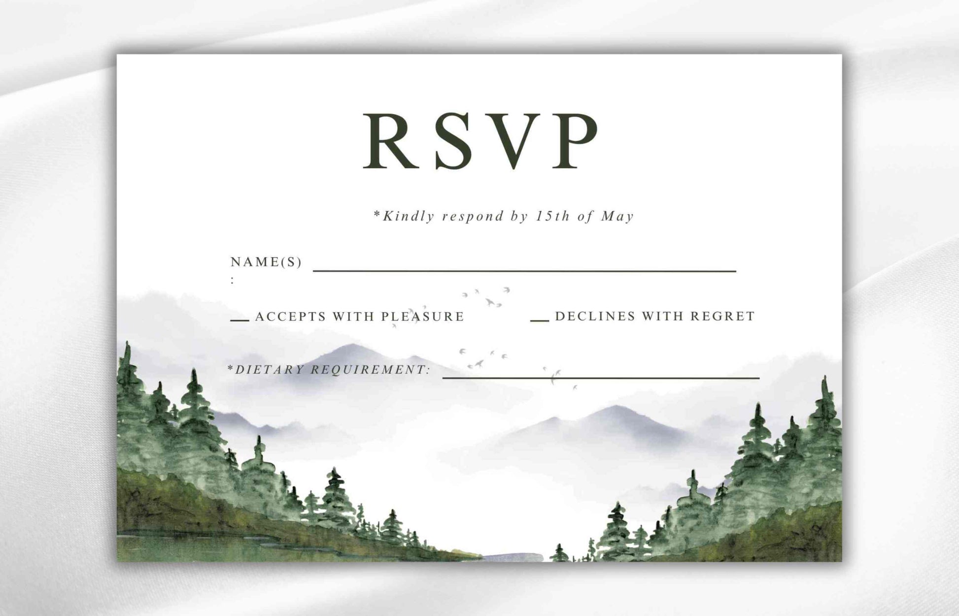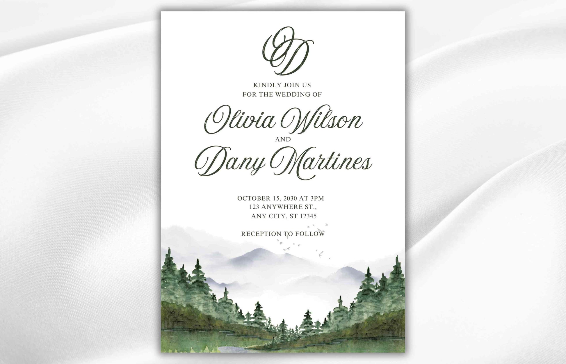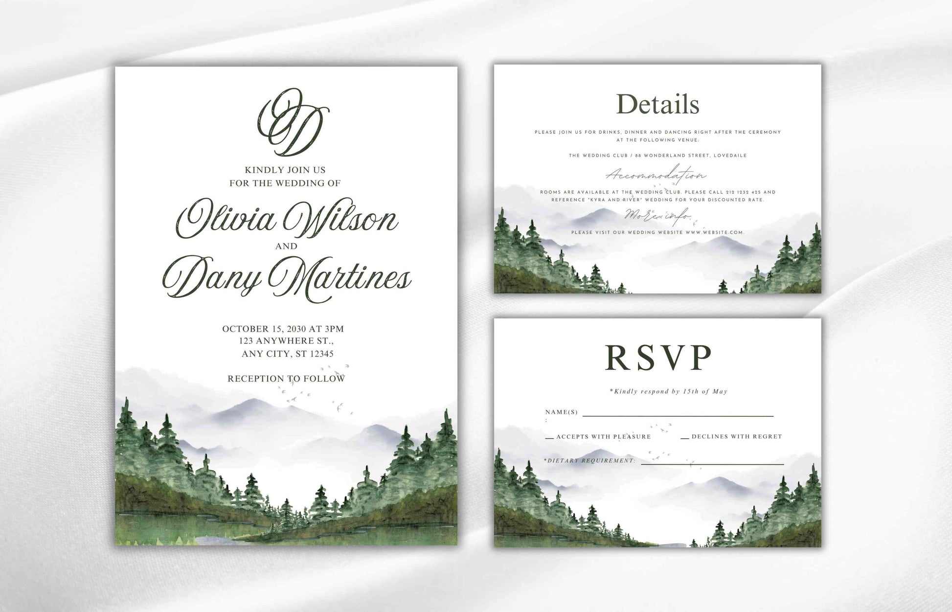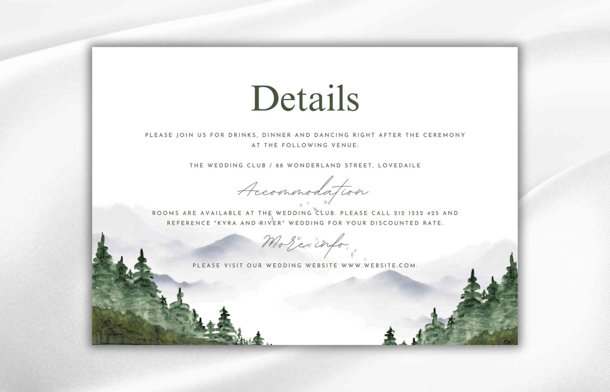 Rustic Mountain Wedding Invitation Suite: Woodland Forest Pine Design with Sage Details Card, Printable RSVP, Instant Download. WI94