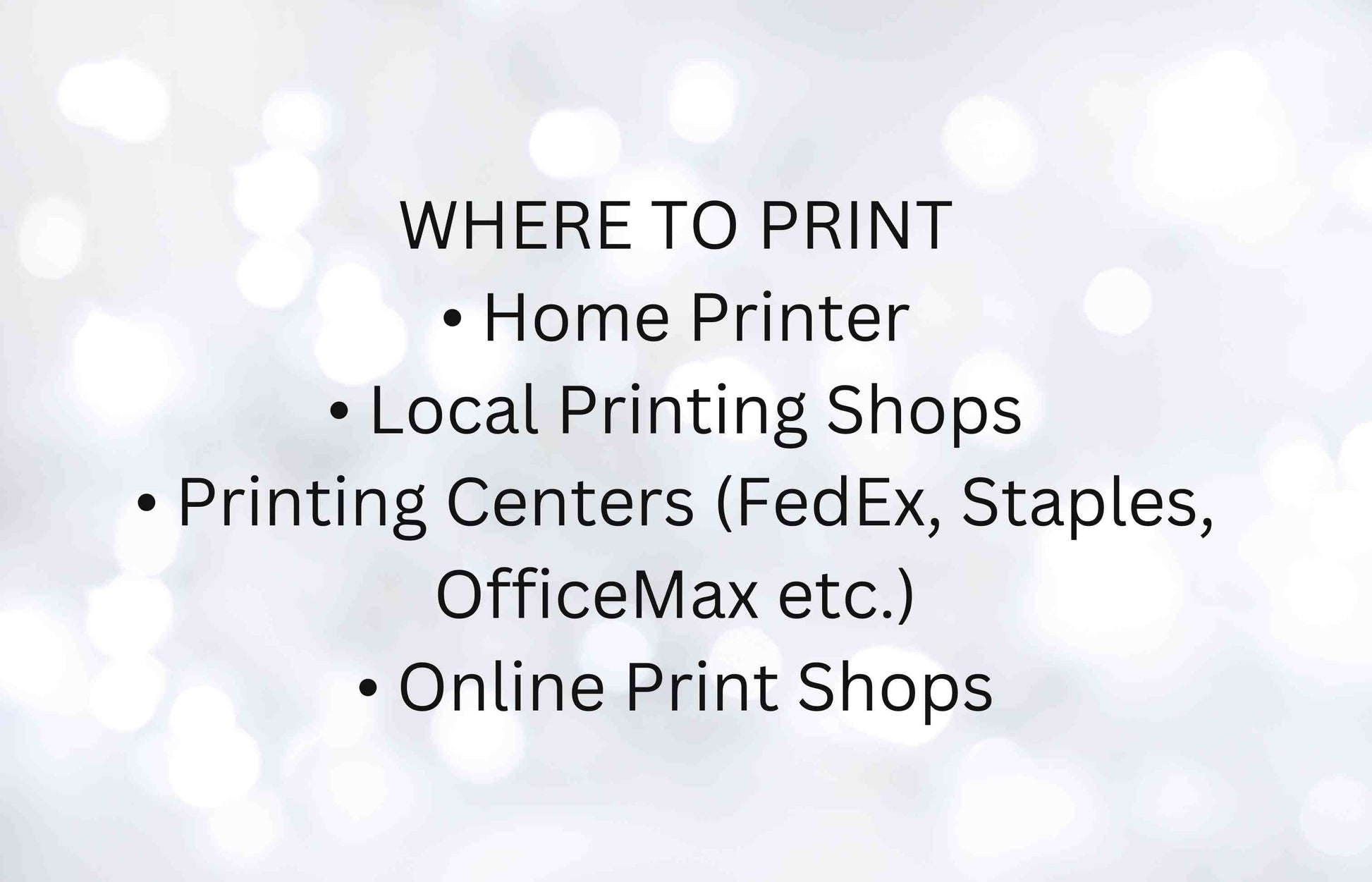 • Print at home or at one of your local print shops.