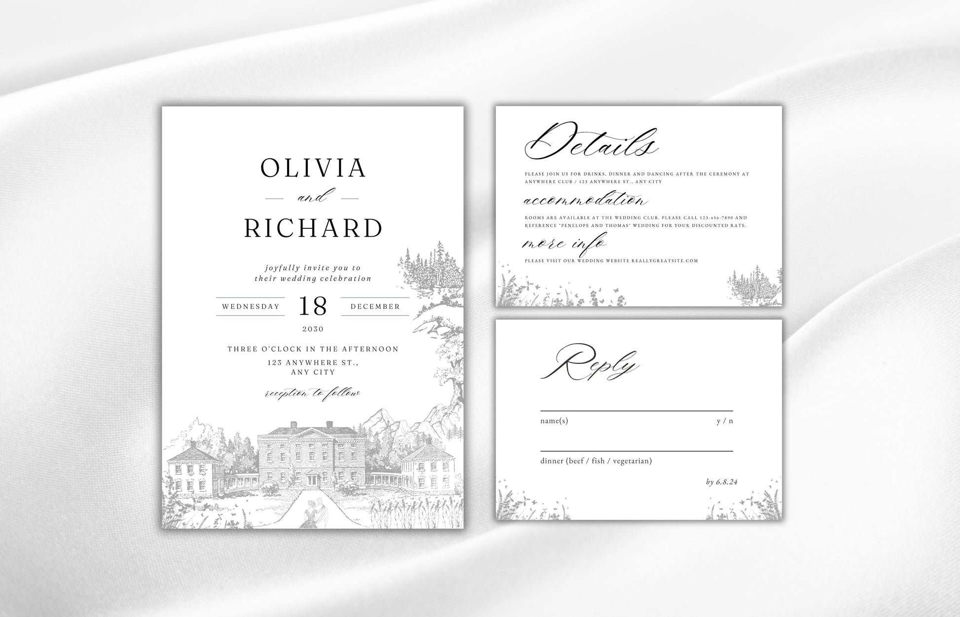 Wedding Invitation Set, Wedding Palace Invitation, Wedding Invitation Template, RSVP, Details Crd, Invitation, Editable Template. WI64