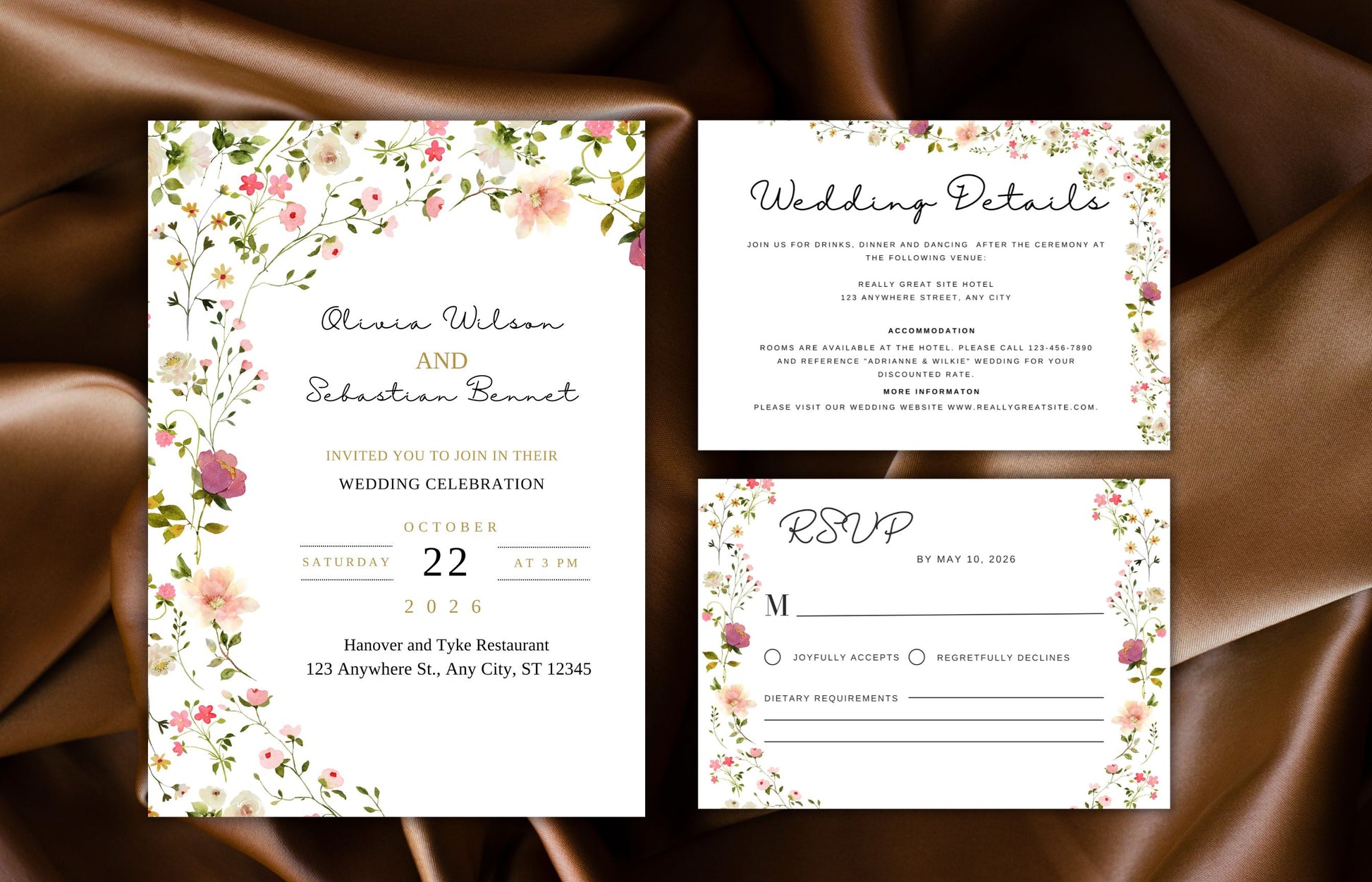 Wedding Invitation Set, Wildflower Invitation, Wedding Invitation Template, Boho Wildflower Invitation, Editable Template, Digital. WIT66