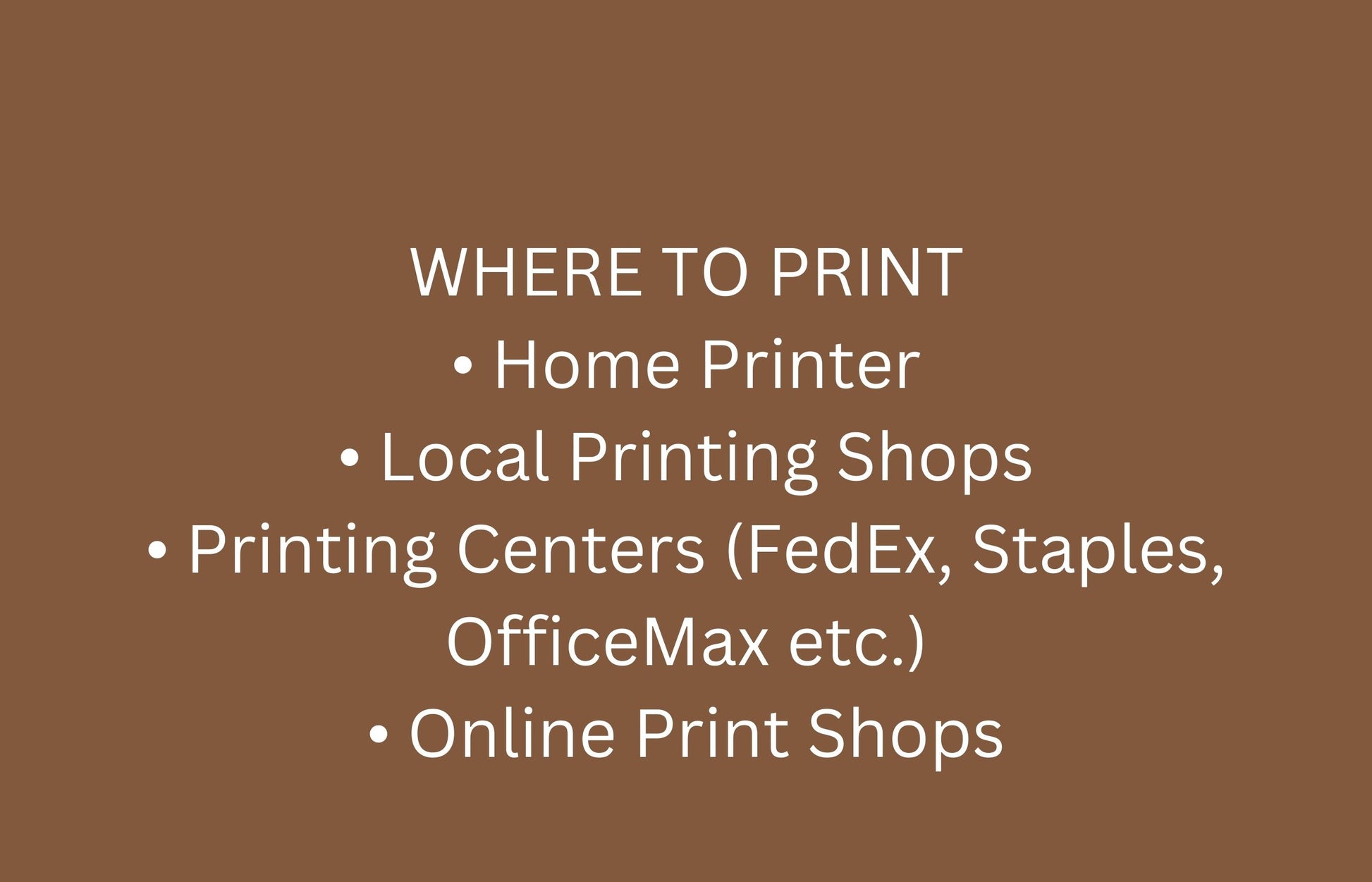 • Printing Centers (FedEx, Staples, OfficeMax etc.)