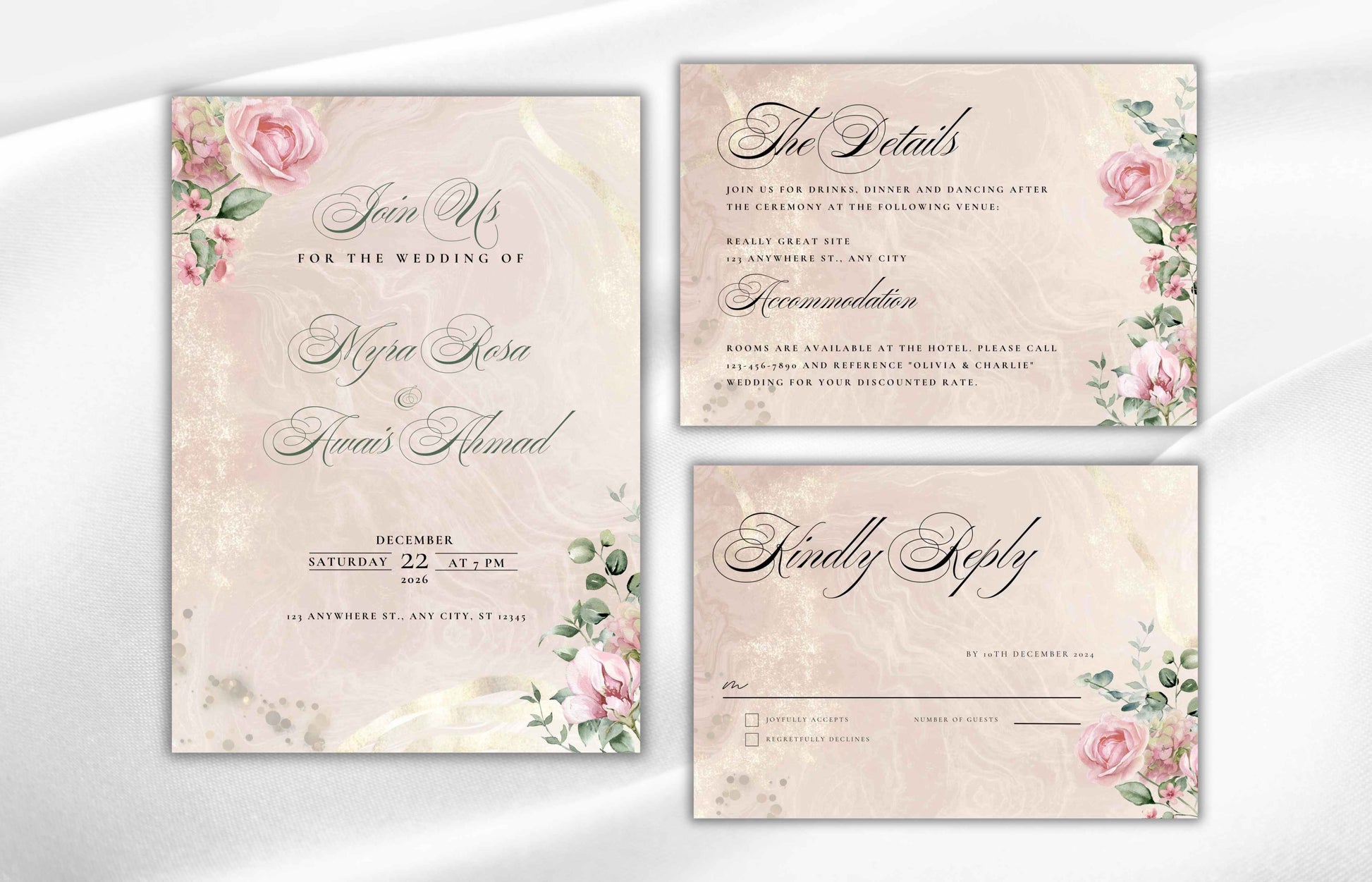 Wedding Invitation Template, Floral Template Invitation Editable Wedding, Blush Pink Wedding Template, Wedding Invitation, RSVP. WI91