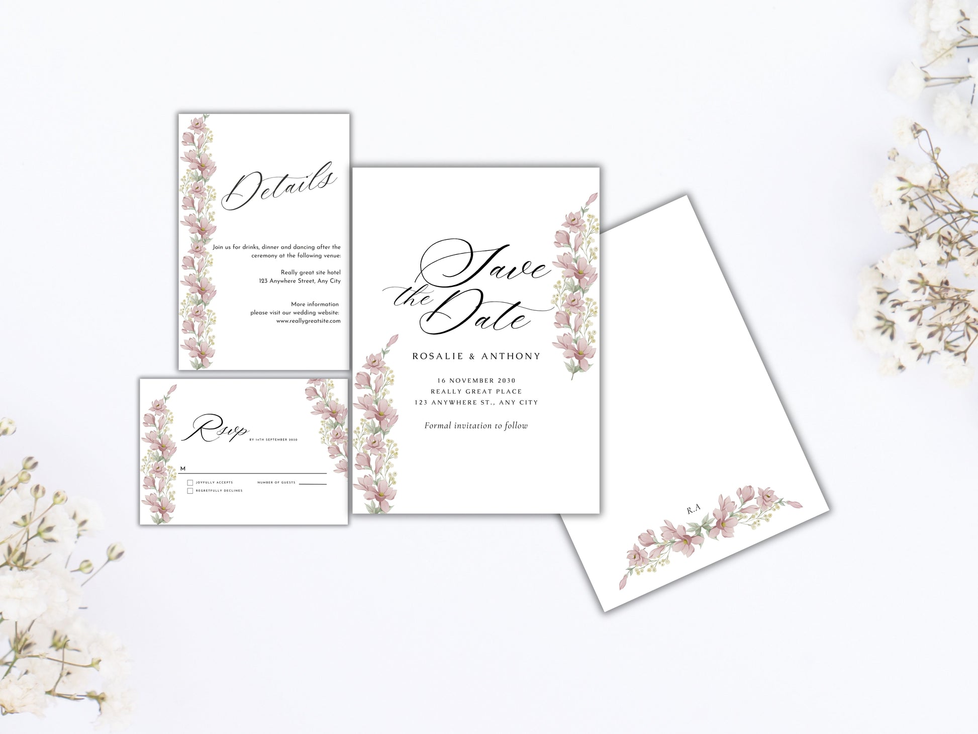 Wedding Invitation Template, Personalised Wedding Card, Printable Wedding Invitation, Details Card, Rsvp Card, Instant Download. WI80