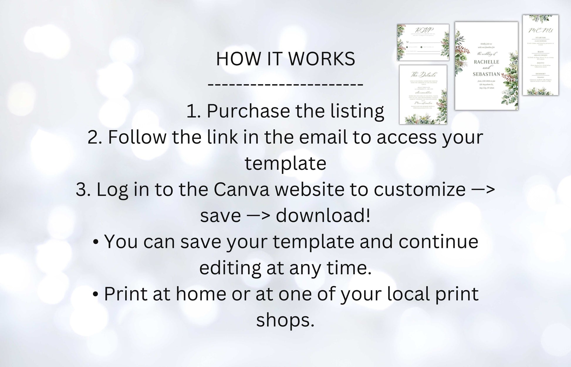 3. Log in to the Canva website to customize —> save —> download!