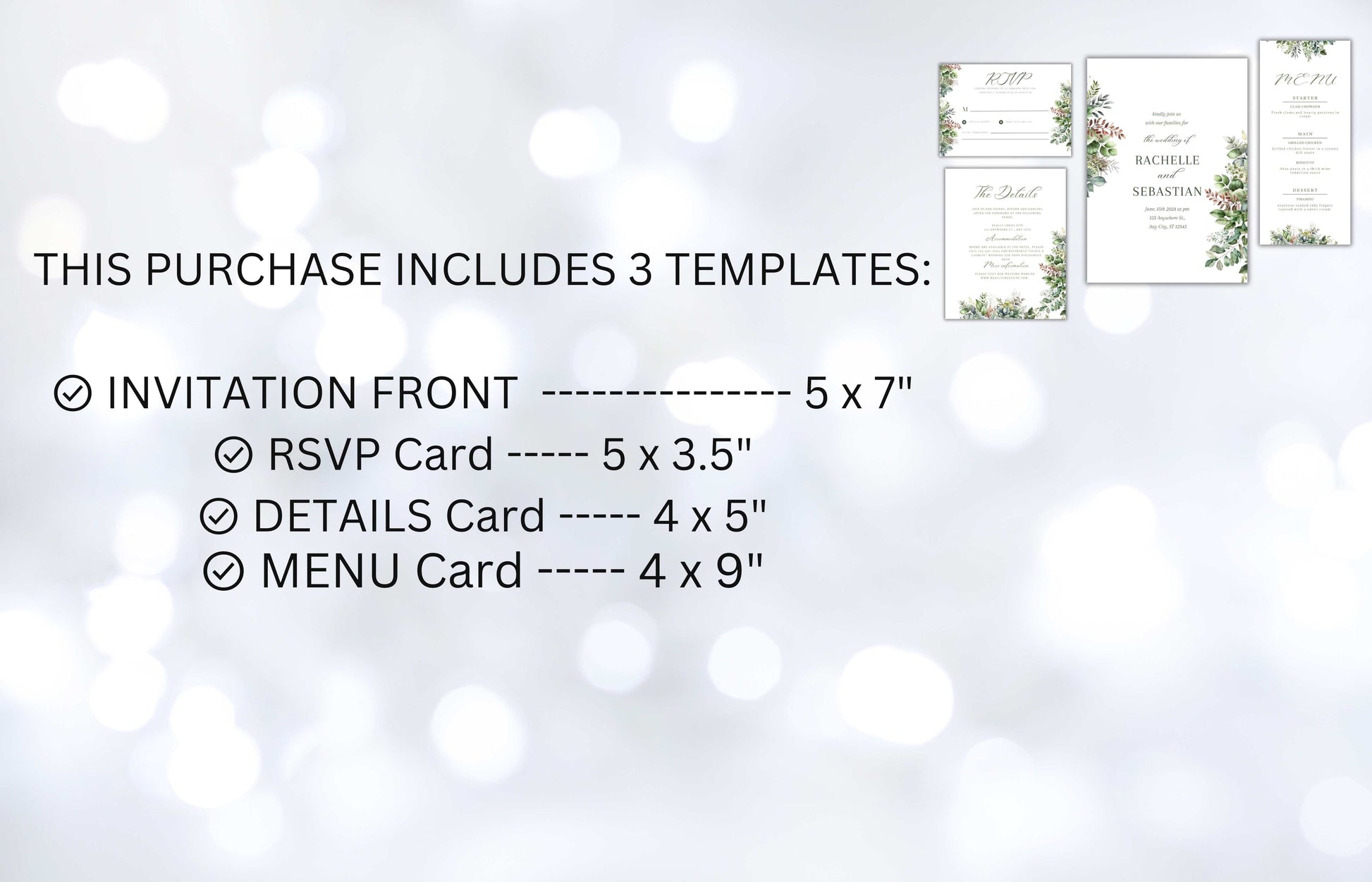 Wedding Invitation Template, Printable Wedding Invitation, Wedding Invitation, RSVP Invitation, Details, Wedding Invitation Bundle. WI73