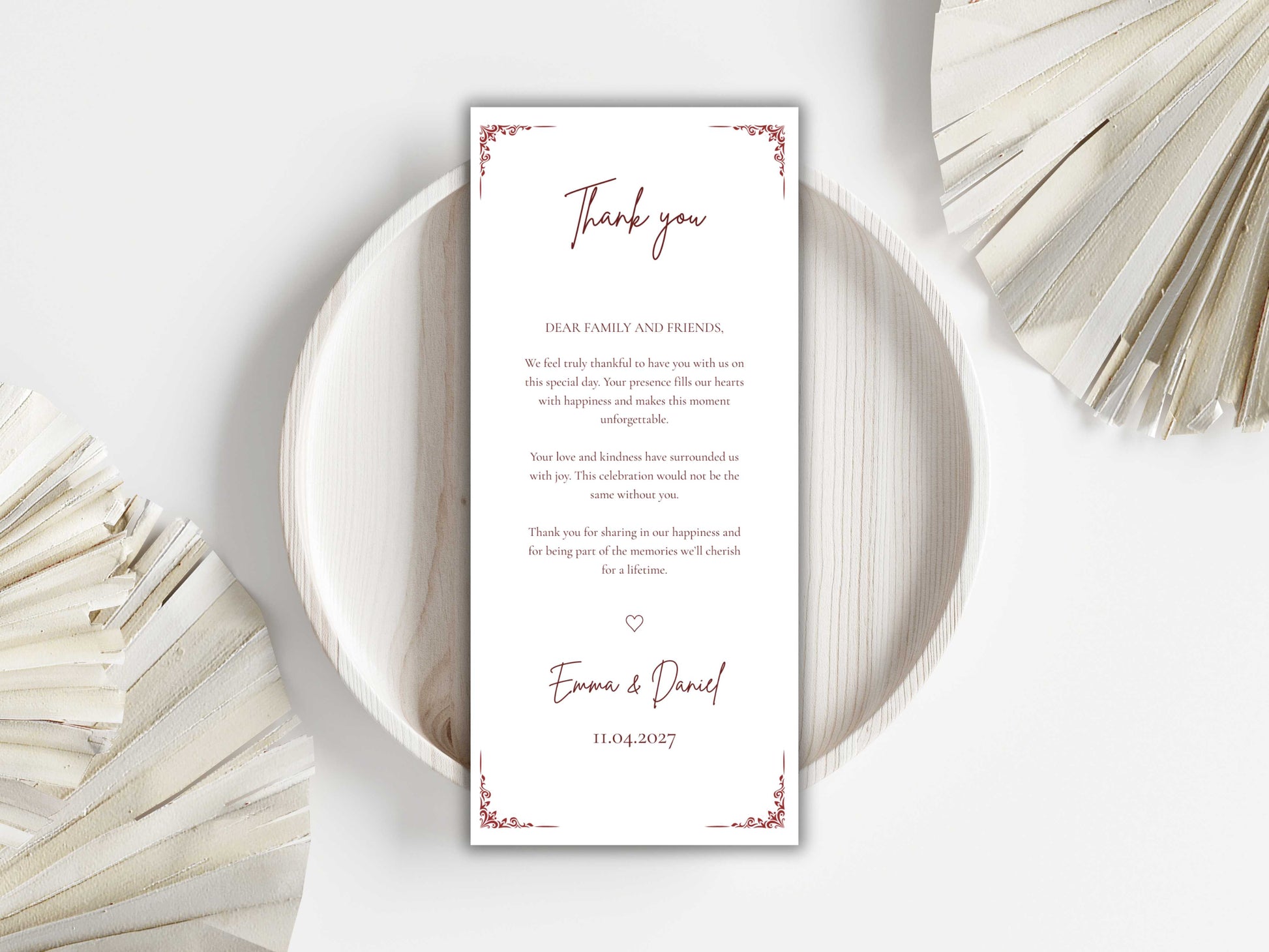 Wedding Menu Template, Thank You Card, Place Card. WI201