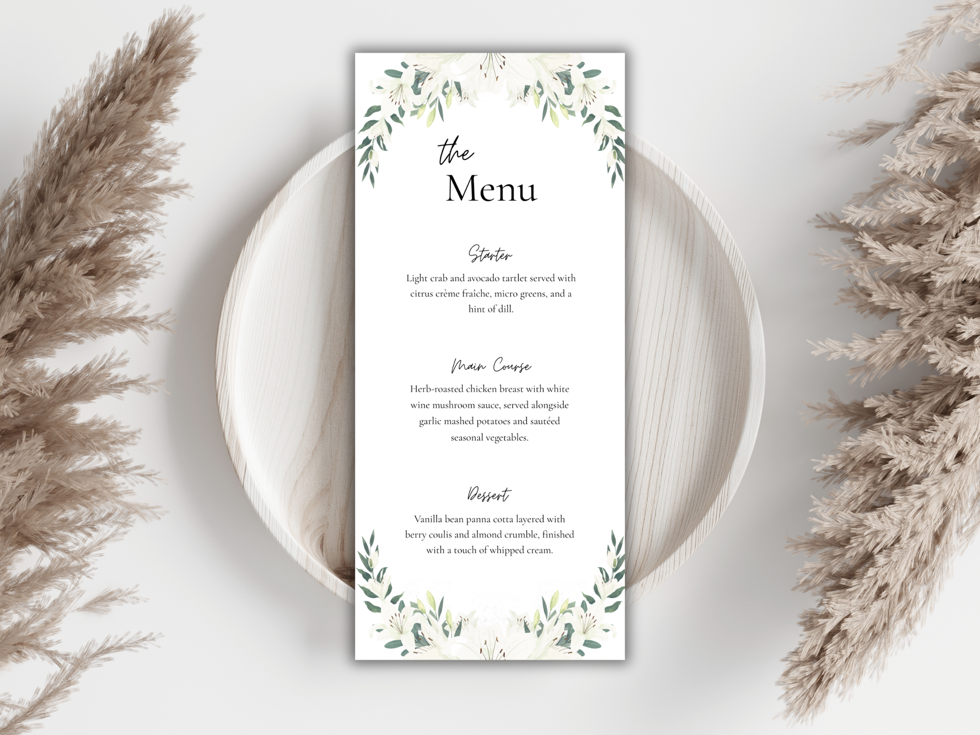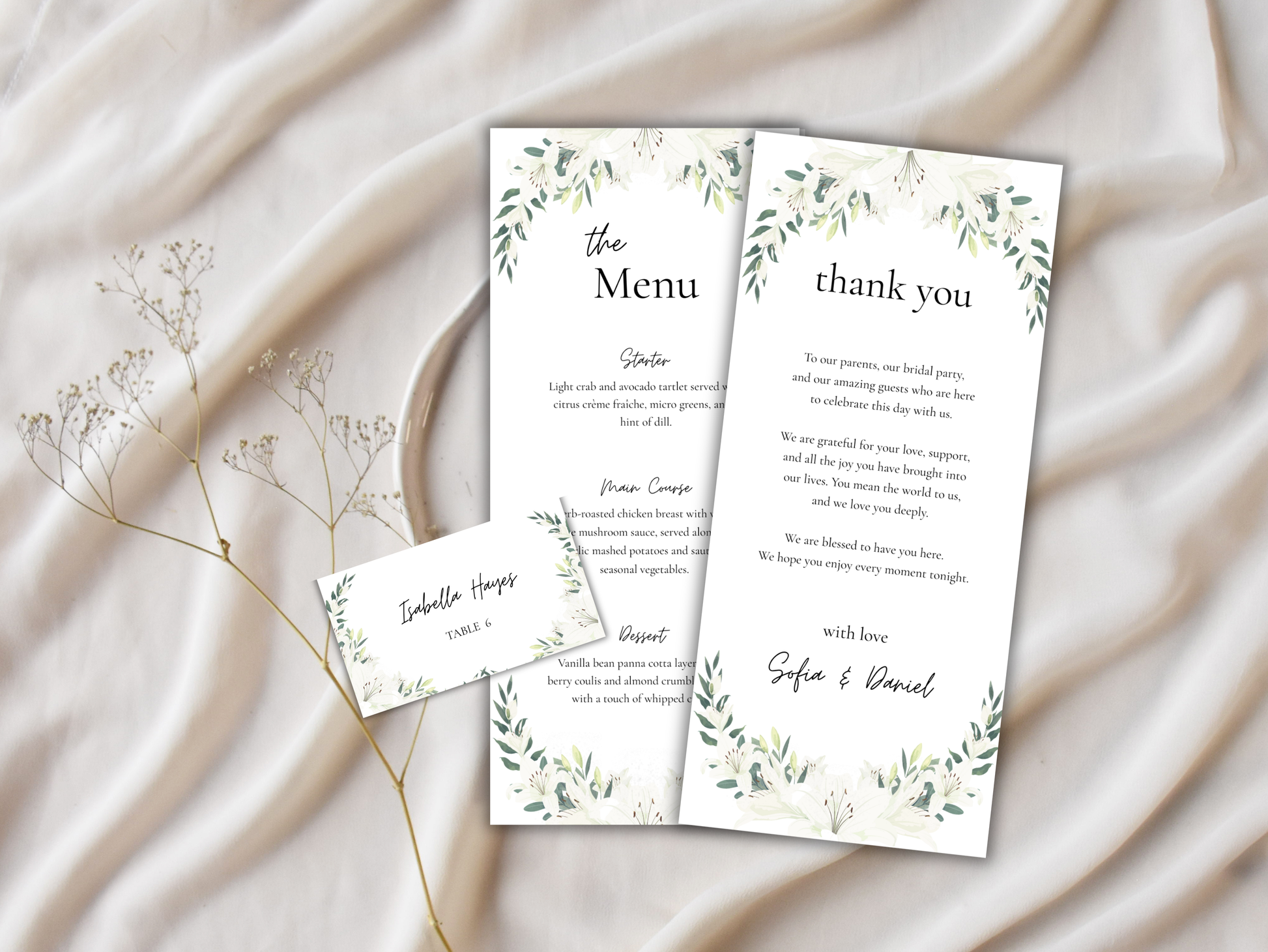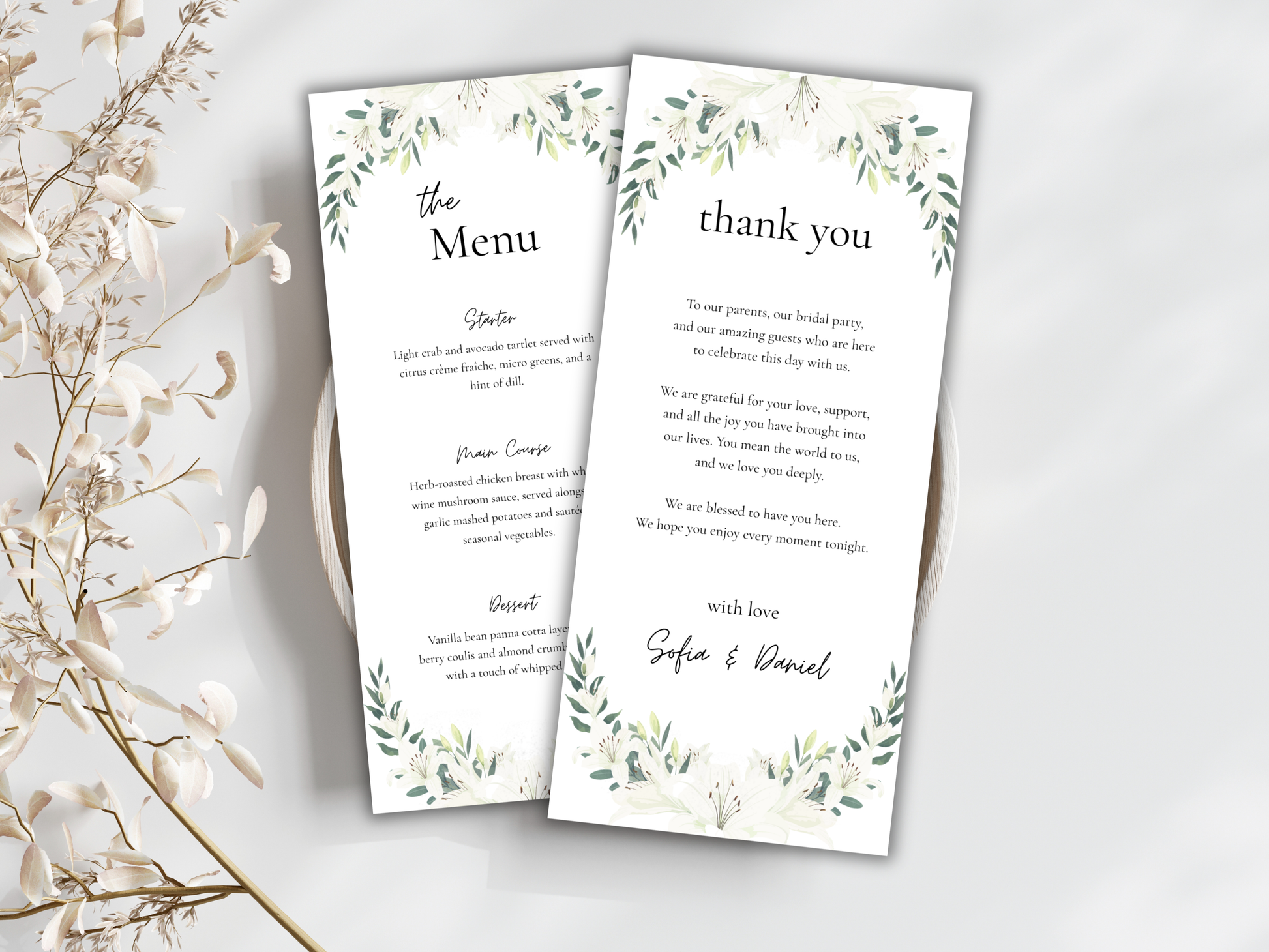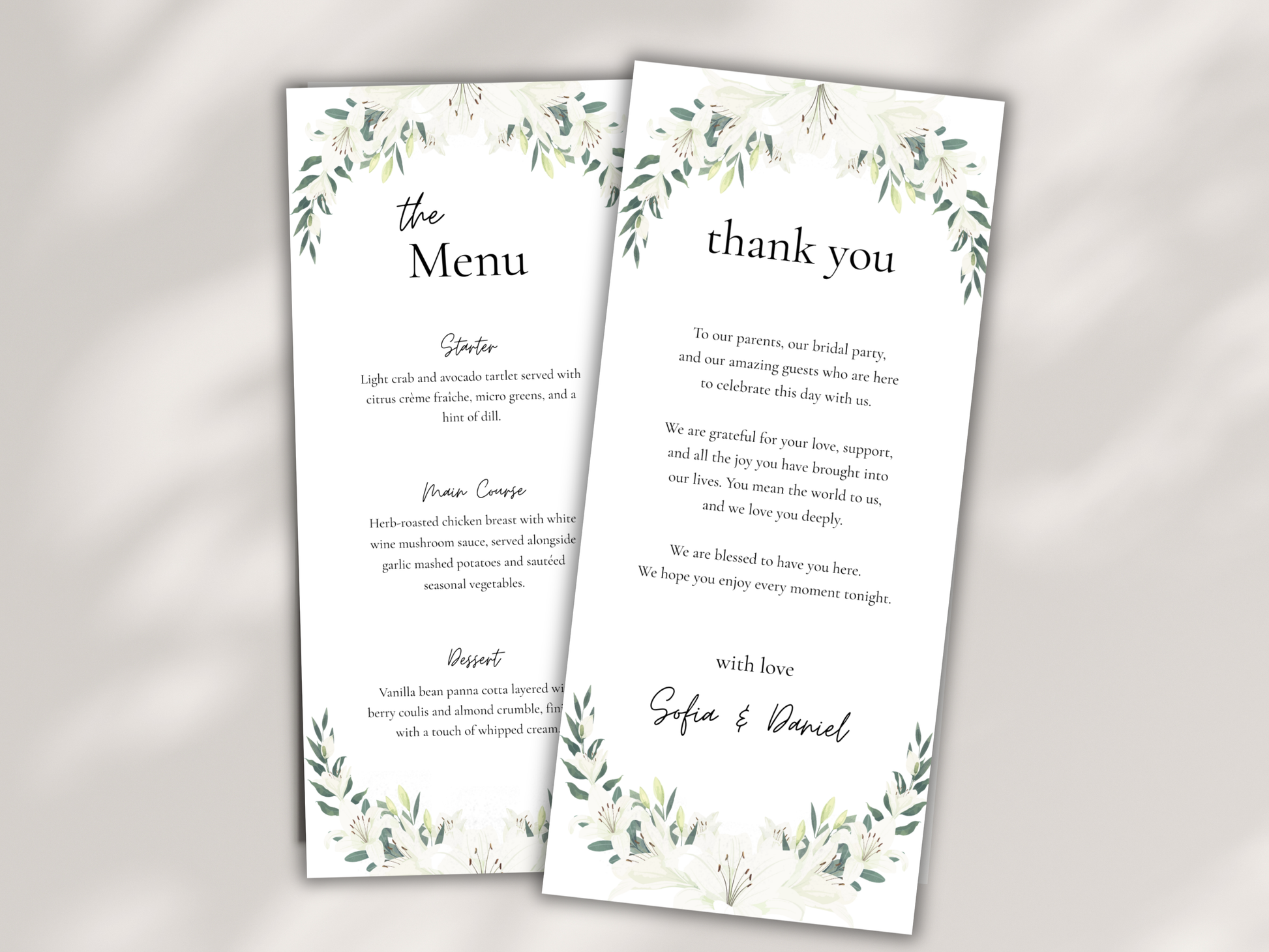 Wedding Menu & Thank You Card Template | Editable Printable Table Place Card. WI203