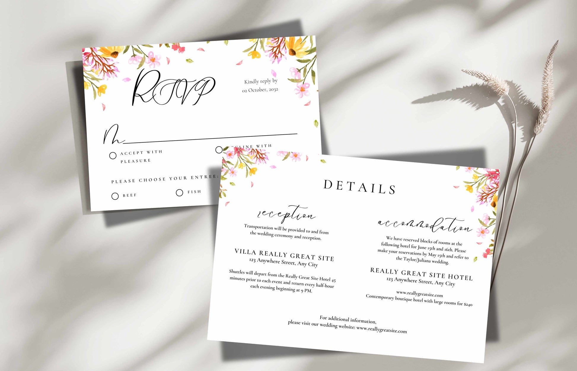 Wildflower Wedding Invitation, Floral wedding invitation template suite, Editable Rsvp, Digital invitation template, Wedding Invites. WE116